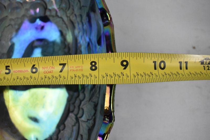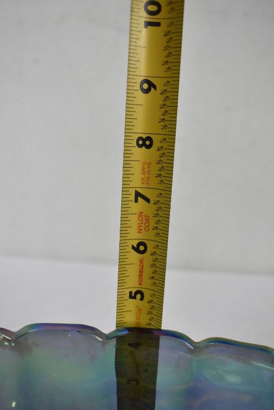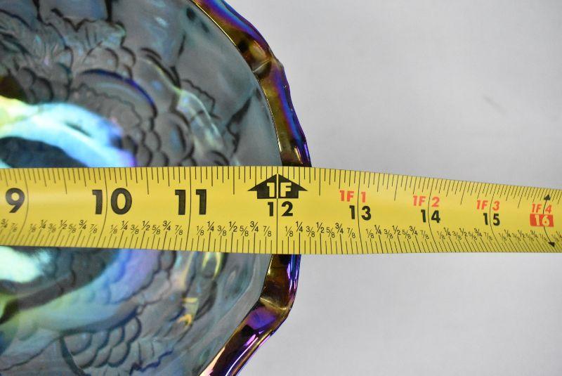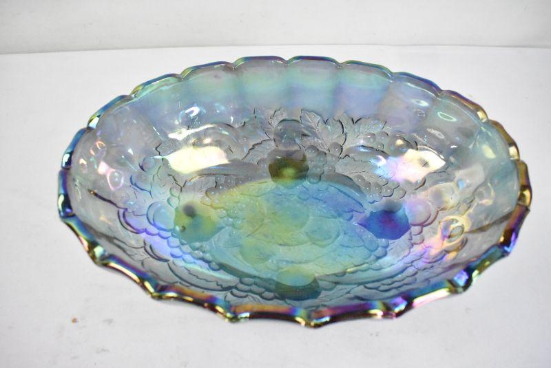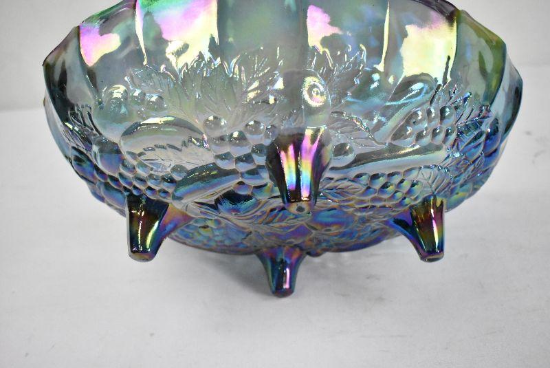 Indiana Carnival Glass Footed Fruit Bowl Blue Iridescent Harvest Grape Vintage