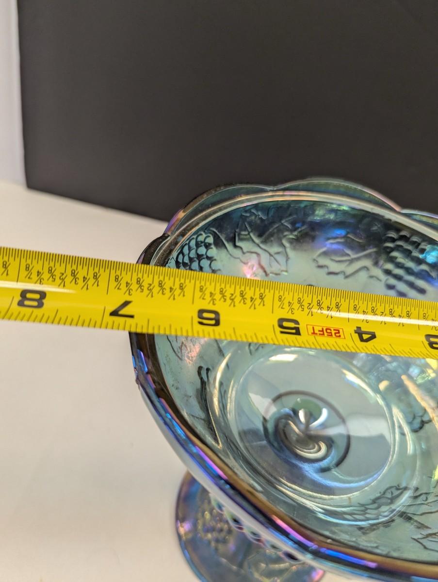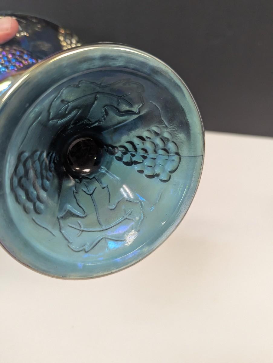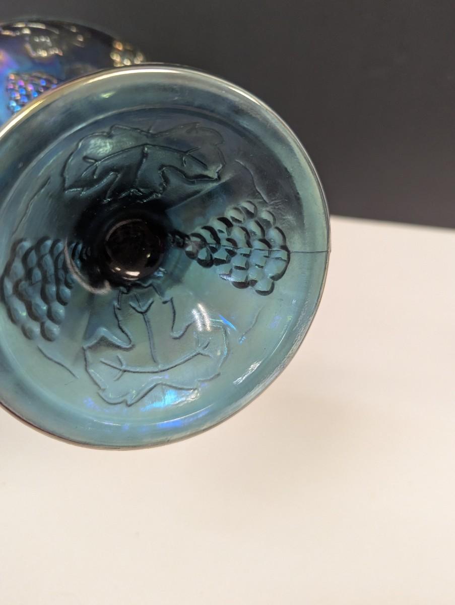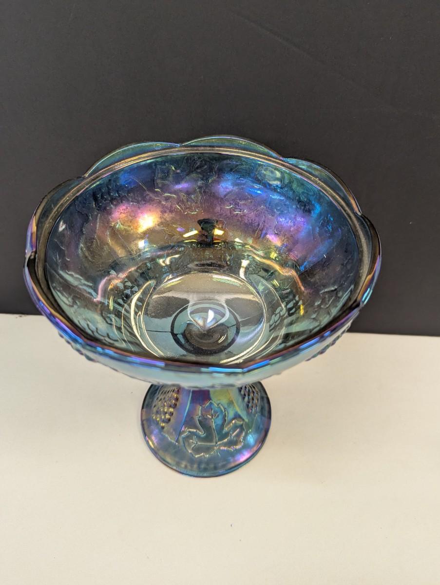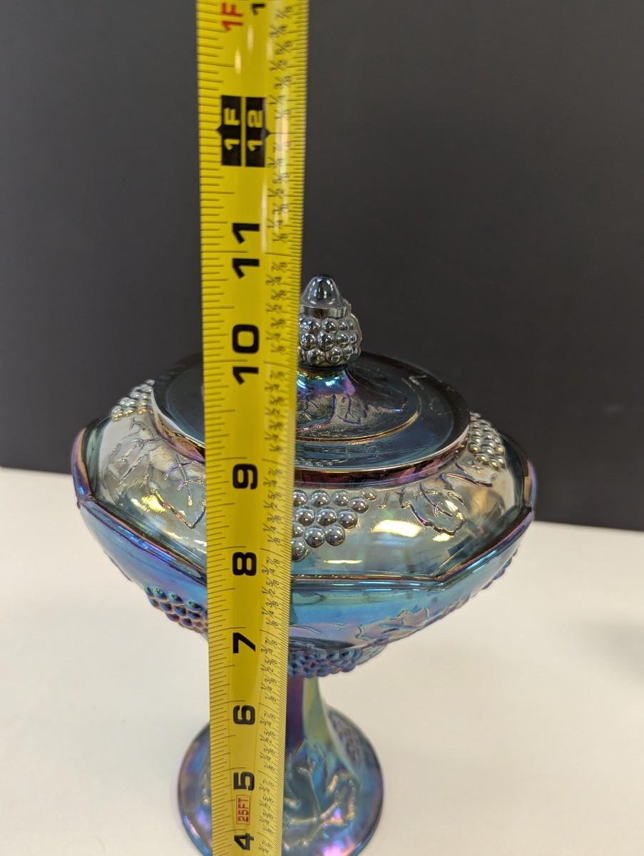 Indiana Carnival Glass Iridescent Blue Harvest Grape Lidded Compote