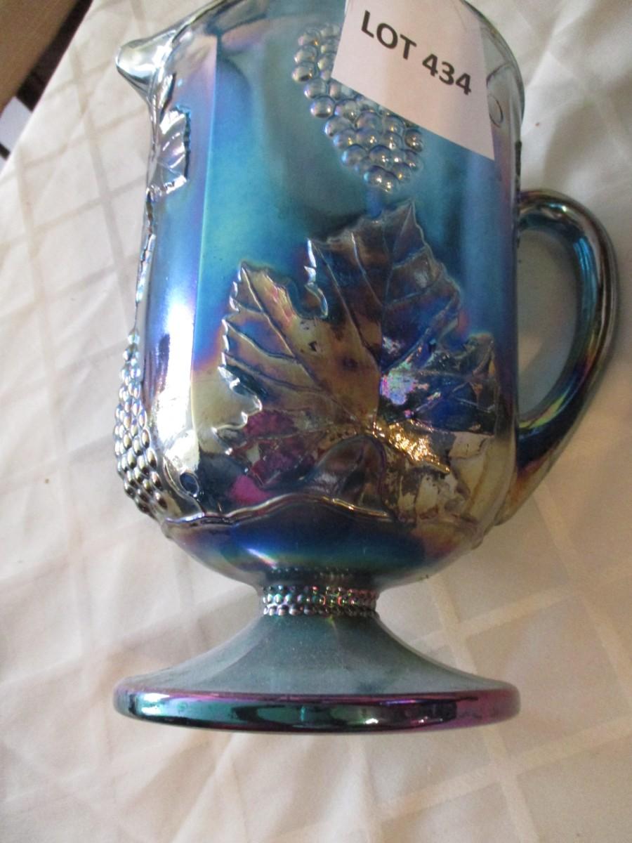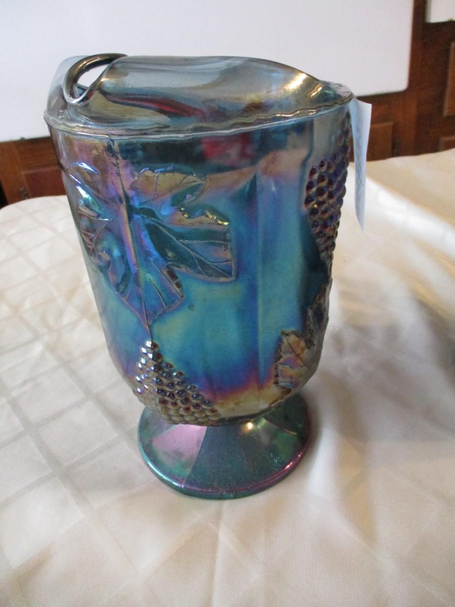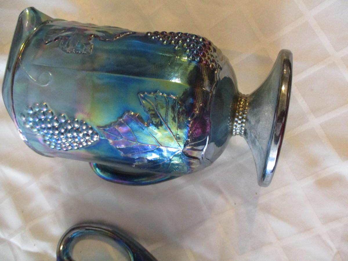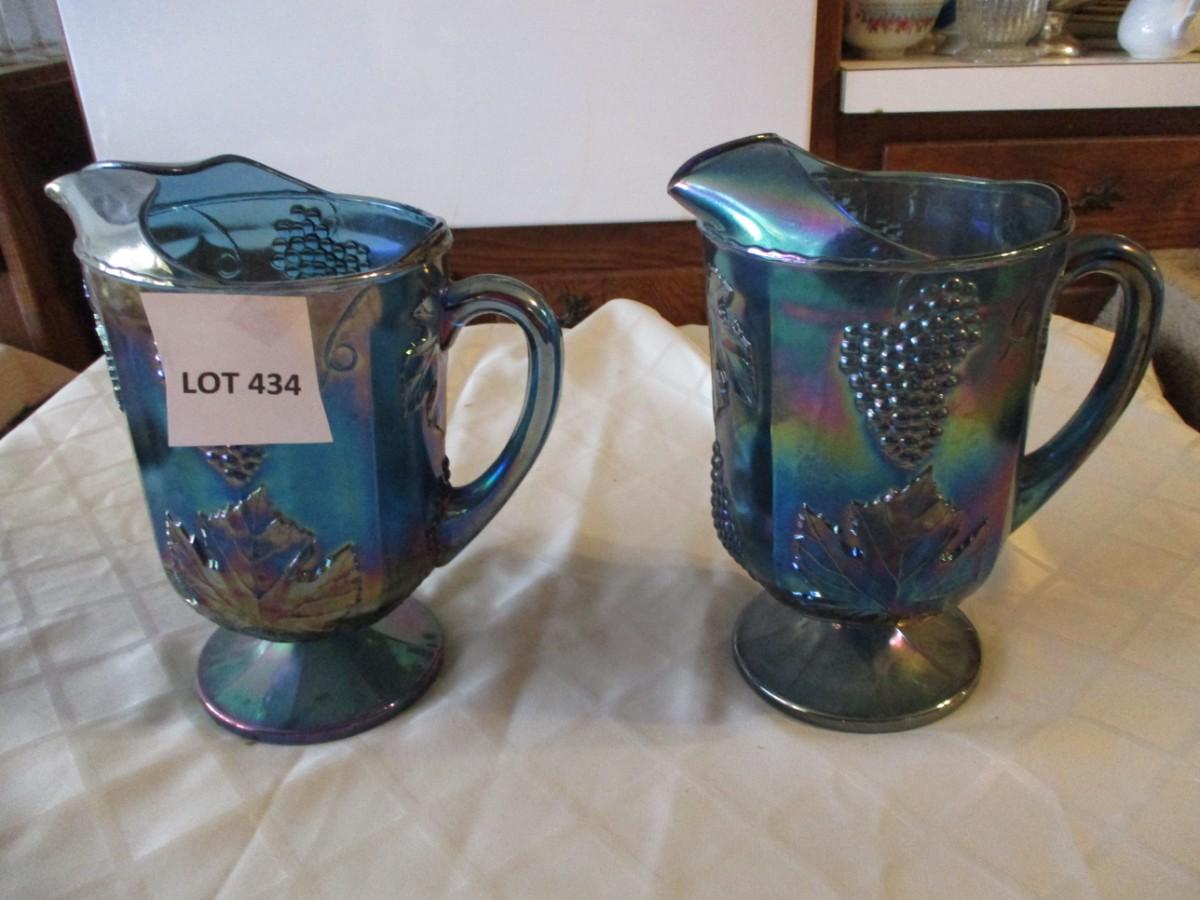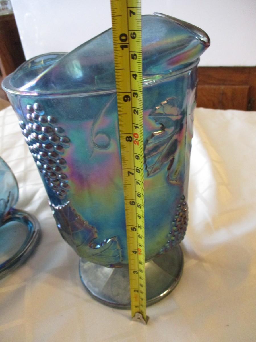 2pc. iridescent blue harvest grape pitchers. Excellent condition