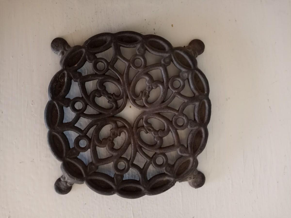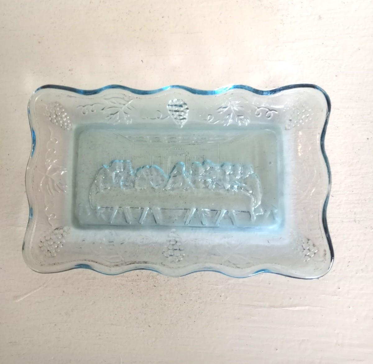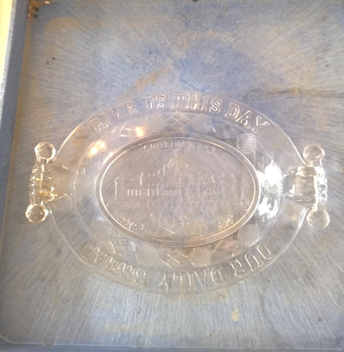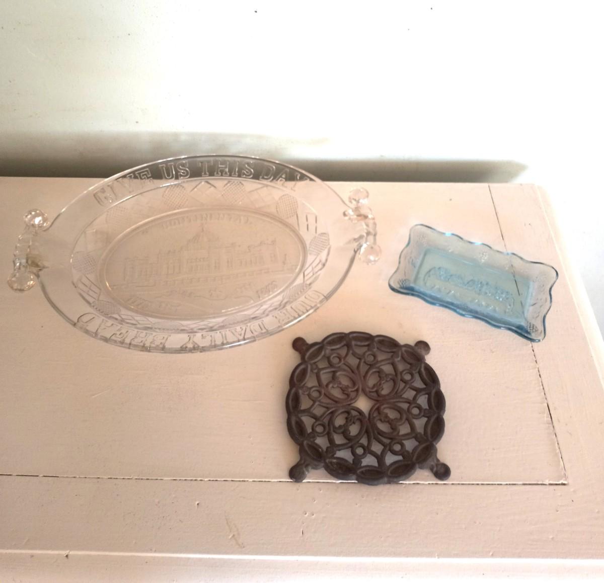 INDIANA GLASS "THE LAST SUPPER"-CAST IRON TRIVET 5" -1876 CENTENNIAL PATTERN BREAD PLATE APPROX. 9X13