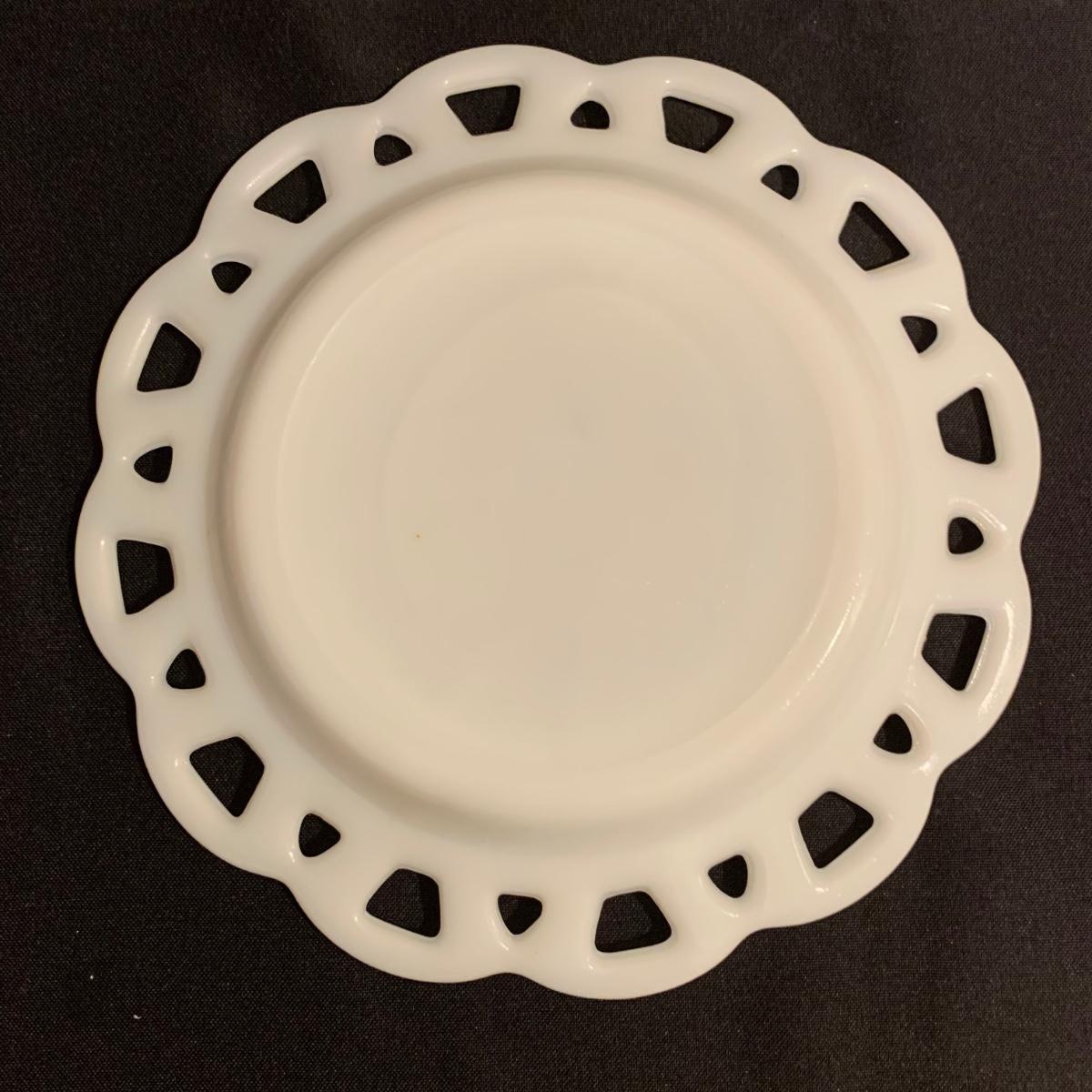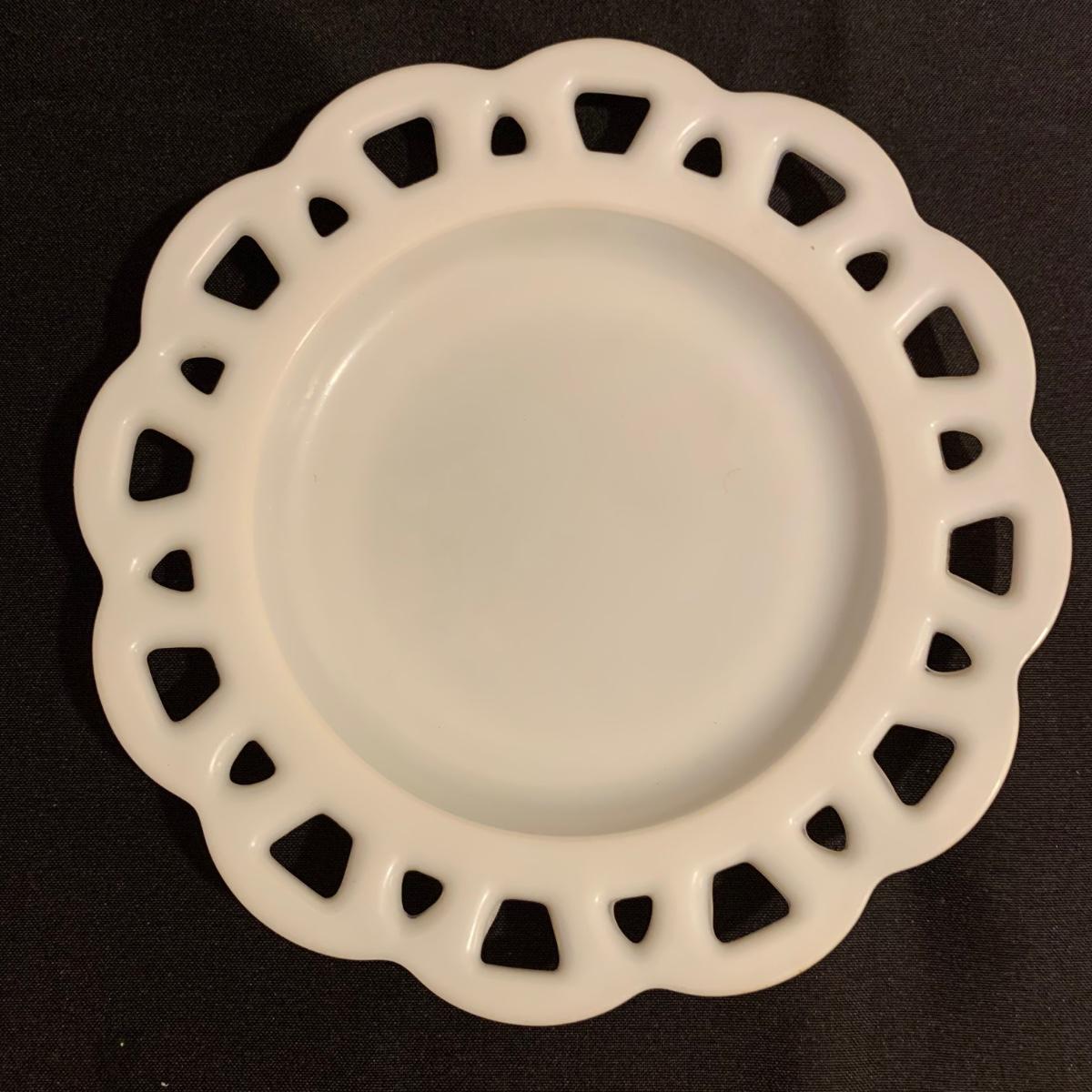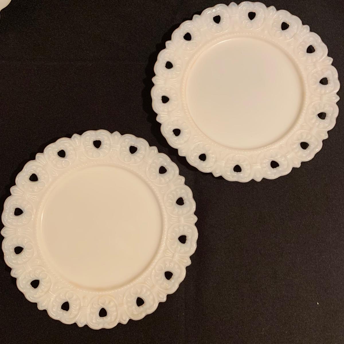 Lovely assortment of milk glass from Indiana, Hazel Atlas, McKee, Kemple, Anchor Hocking, and Westmoreland Glass Companies. This extensive lot includes two footed diamond and quilt pattern compote bowls, two diamond and quilt pattern bowls, a square diamond pattern cake stand, and four orange blossom cups with snack plates from Indiana Glass Company. Additionally, there's a variety of vases and drinking goblets, including three by Hazel Atlas, one by McKee, and four other unique varieties. The collection also features a 13”D Anchor Hocking serving dish, an 8.5”D Anchor Hocking dish, a commemorative President Garfield Memorial plate, a Westmoreland Owl plate, and two lace heart luncheon plates by Kemple Glass Co. Large footed compote bowl measures, 7”D x 9”H. Please see photos for more details and note that only glass items are included in this lot. Please note that not all items have a maker's mark or manufacturer information, but that they have the appearance of the brand names listed in the above description.