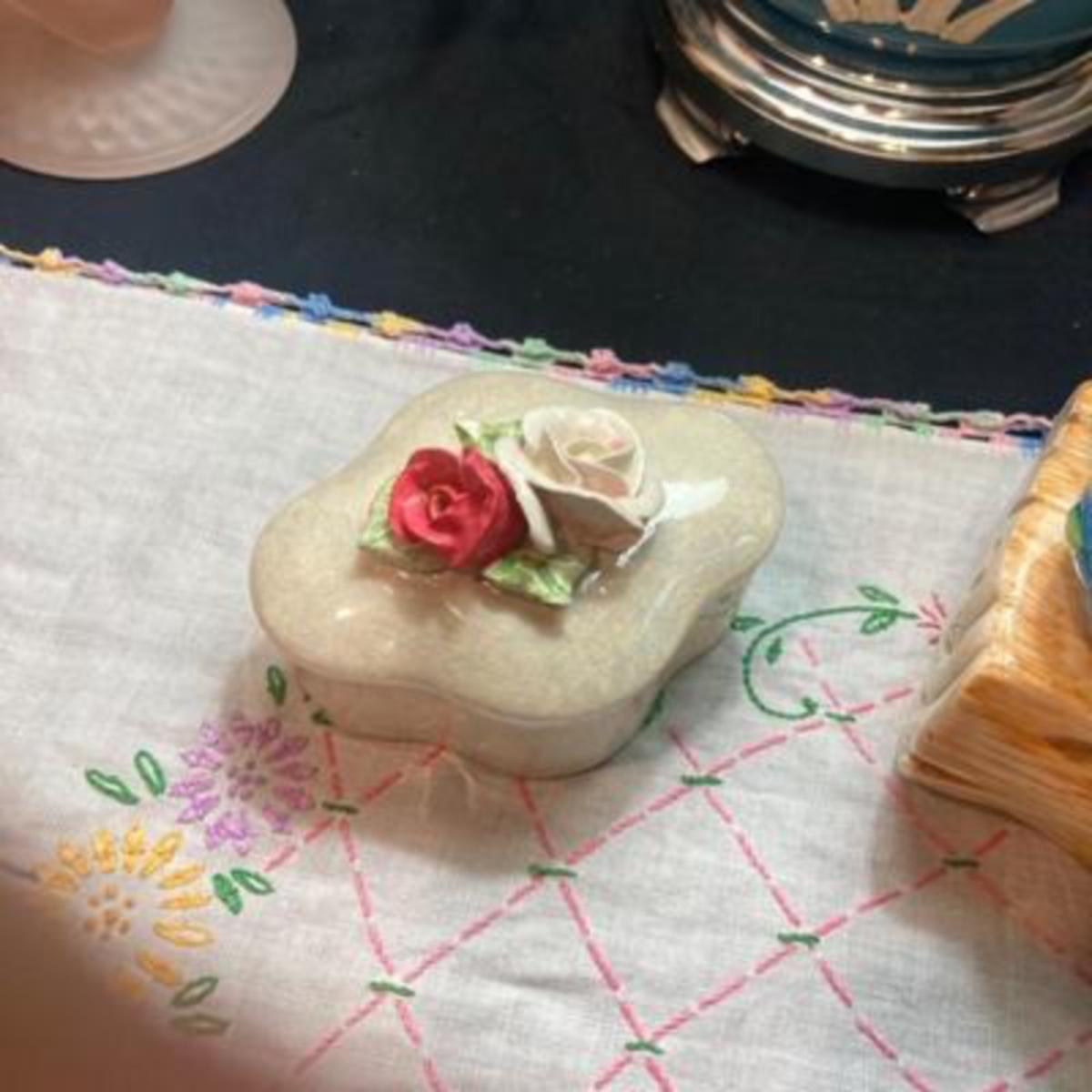 Indiana glass bud vase, trinket dish (does show signs of crazing from age)