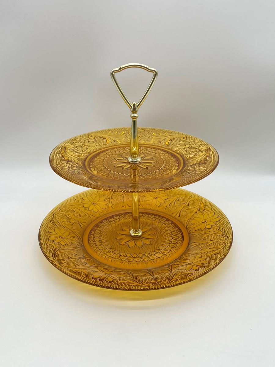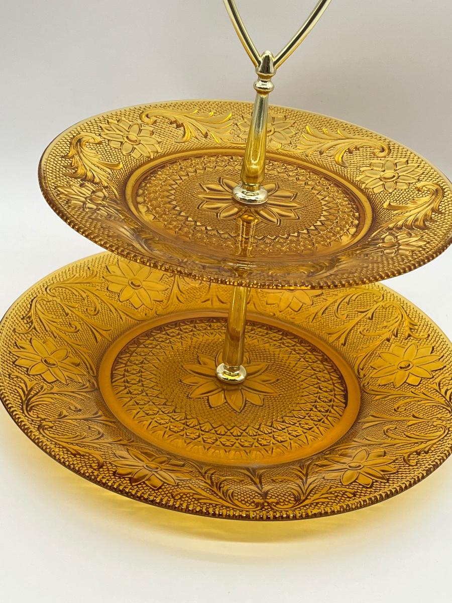 INDIANA GLASS ~ Tiara Amber Glass ~ 2 Tiered Pastry Tray