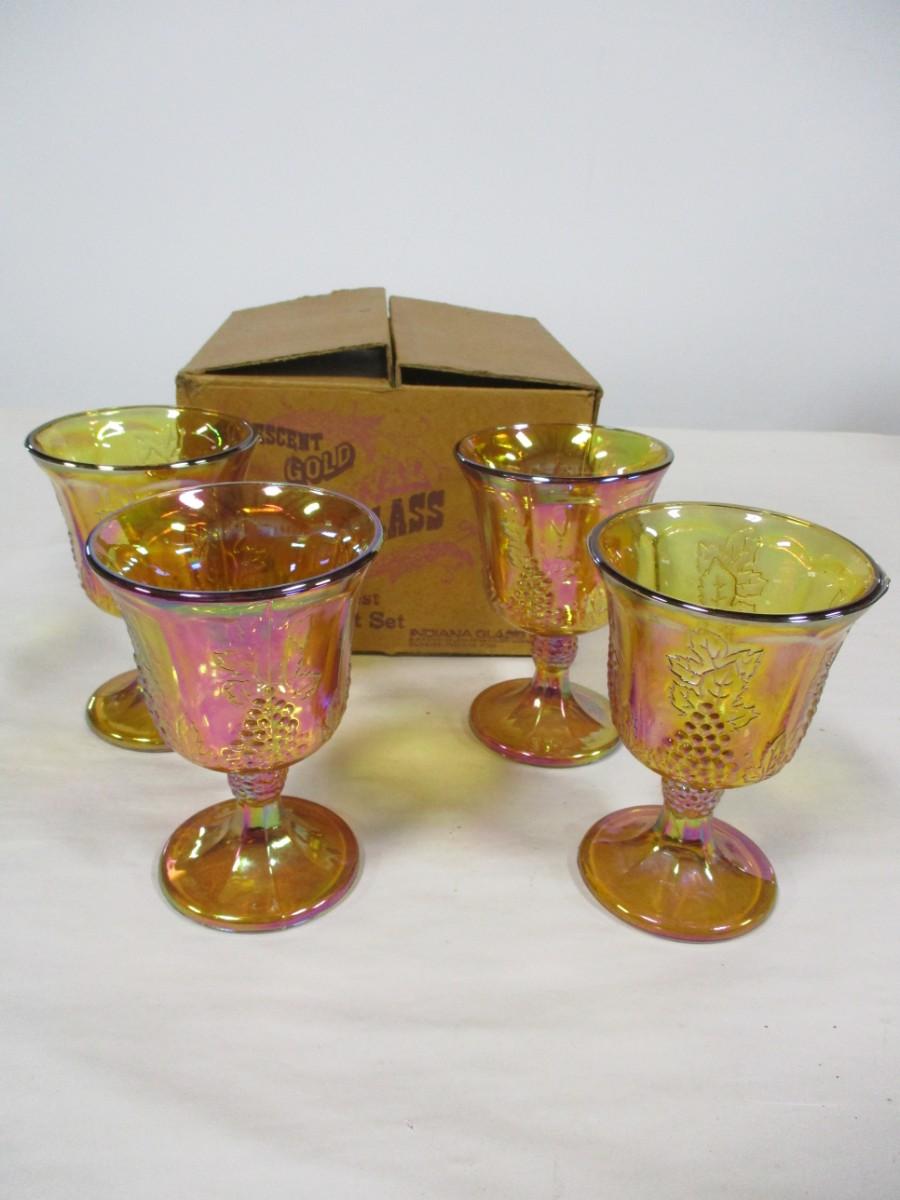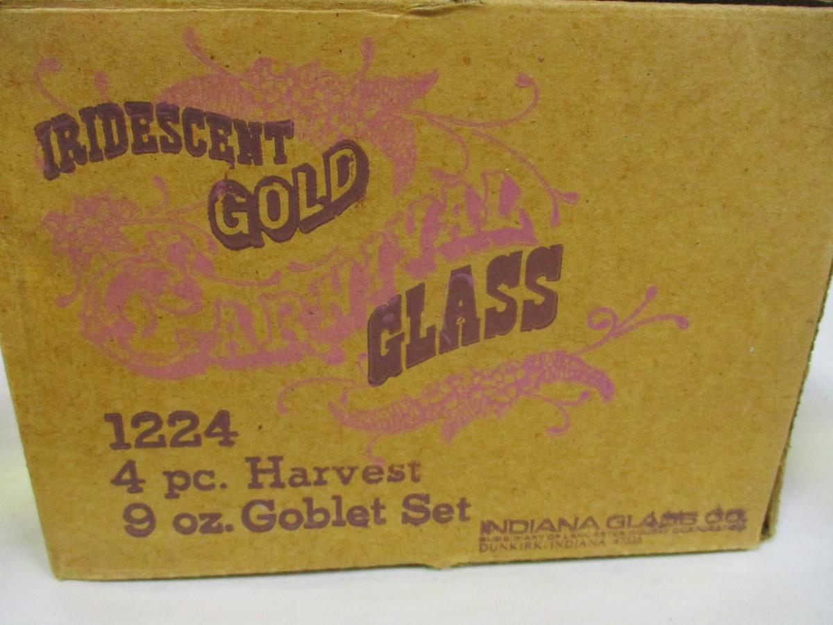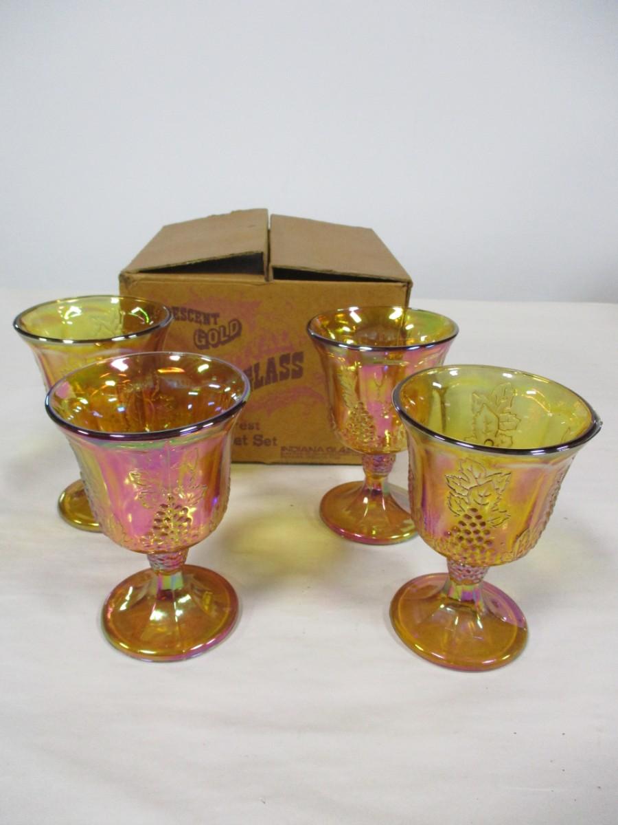 Indiana Iridescent Gold Glass 4 Piece Harvest Goblet Set