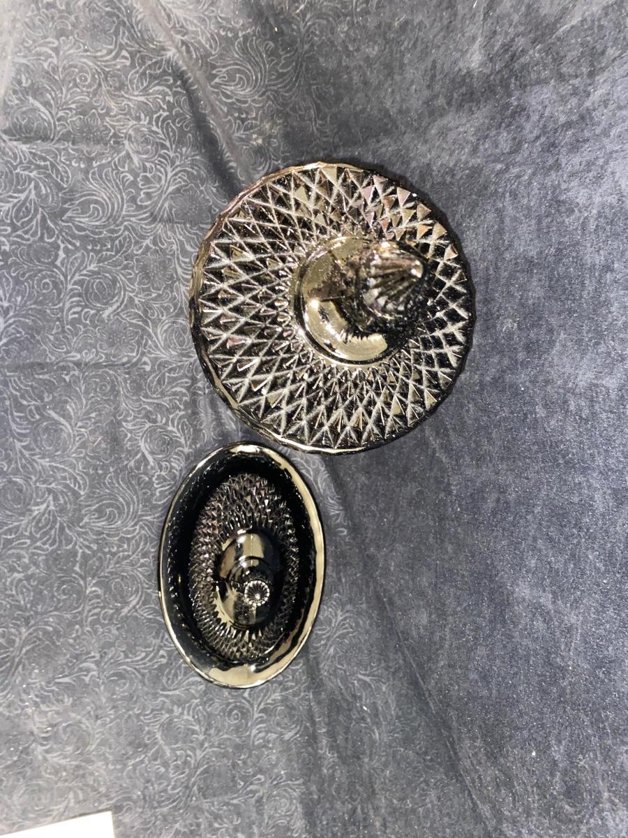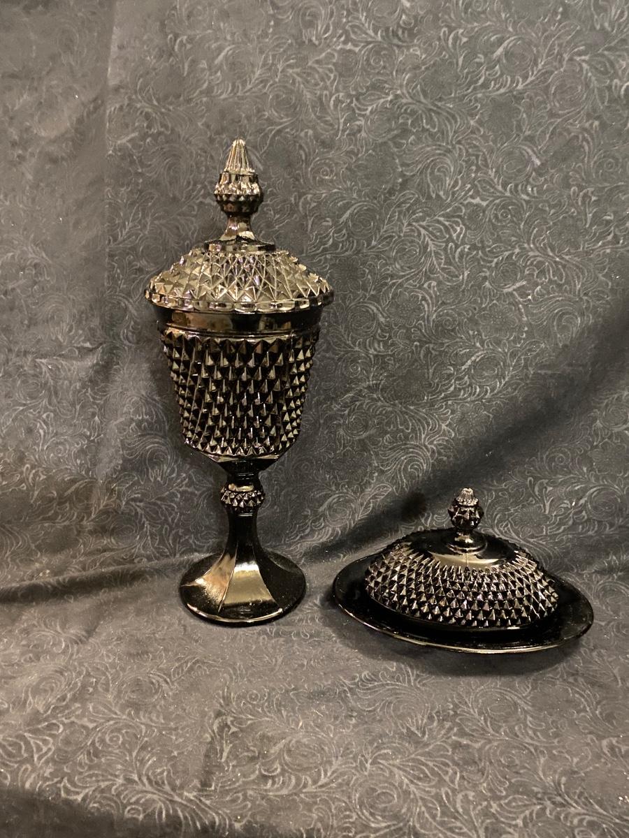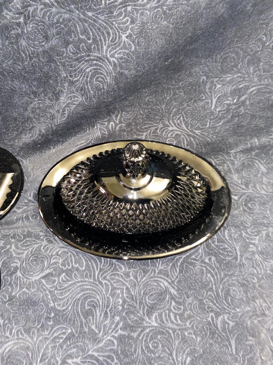INDIANA TIARA BLACK DIAMOND POINT BUTTER DISH AND COVERED JAR