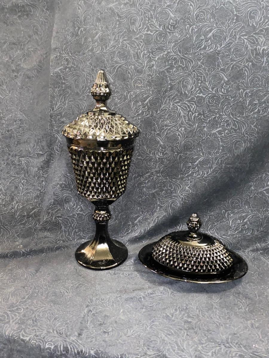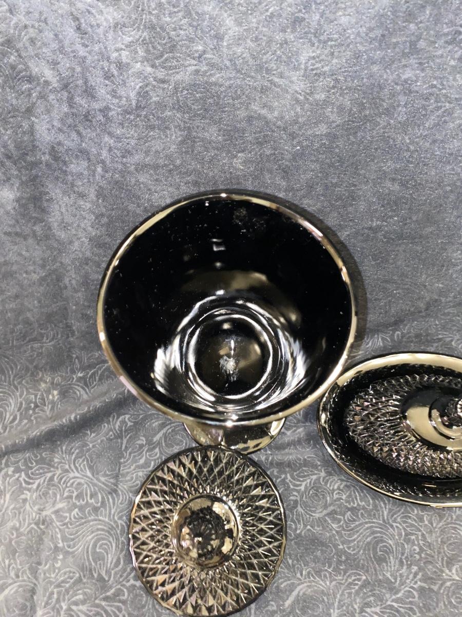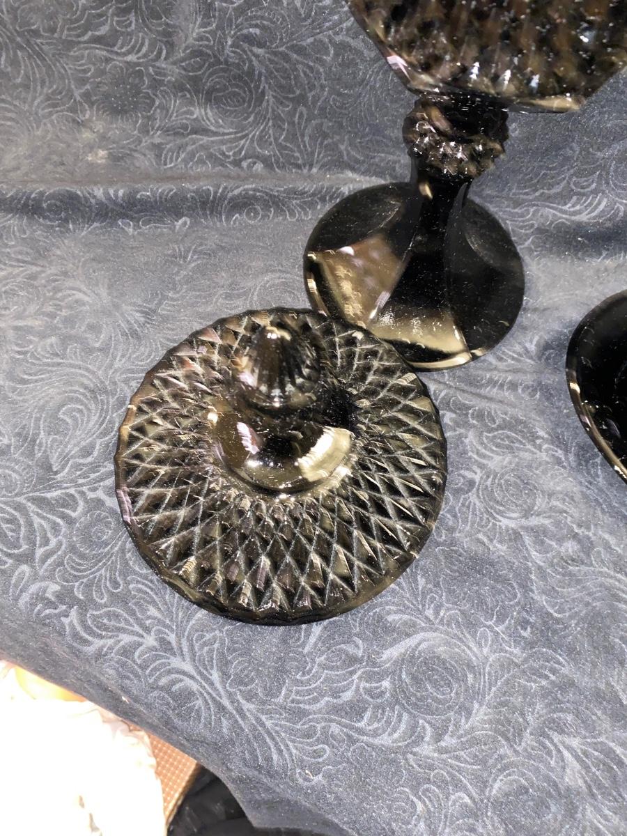 INDIANA TIARA BLACK DIAMOND POINT BUTTER DISH AND COVERED JAR
