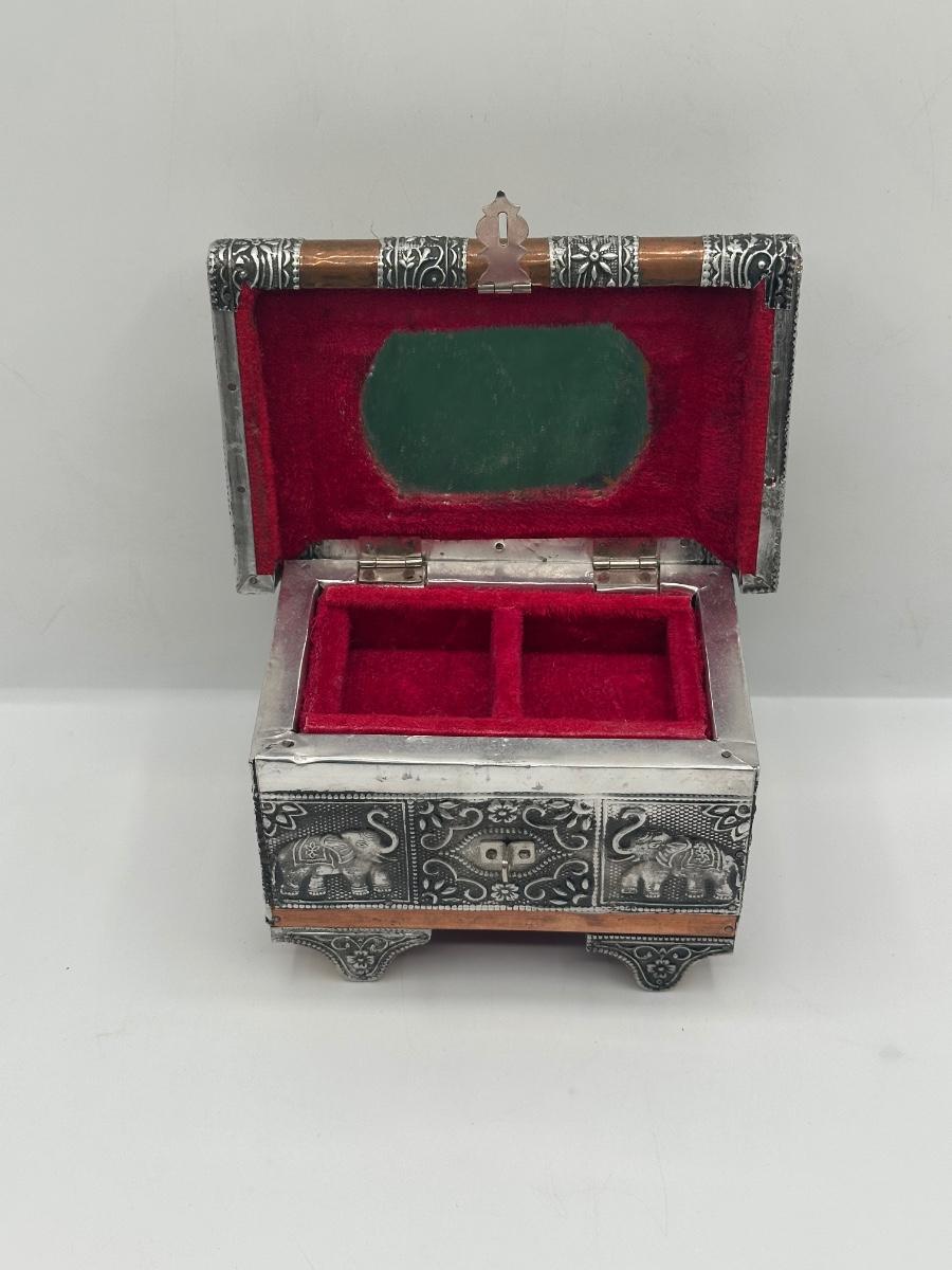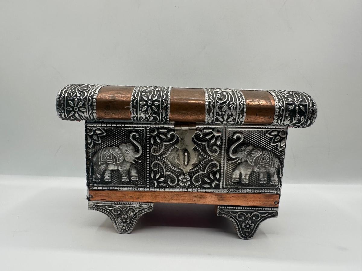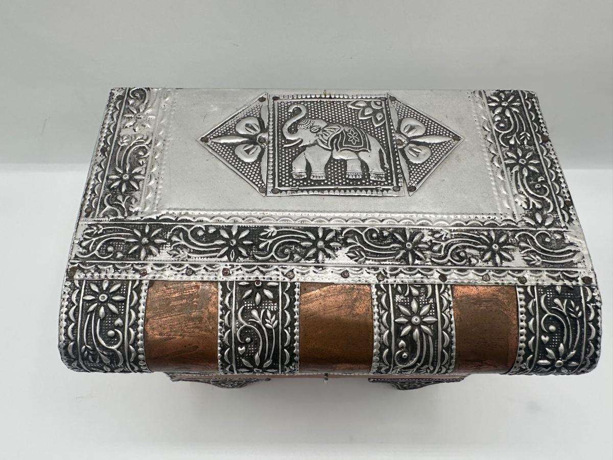 Indian-Style Embossed Metal Elephant Jewelry / Trinket Box