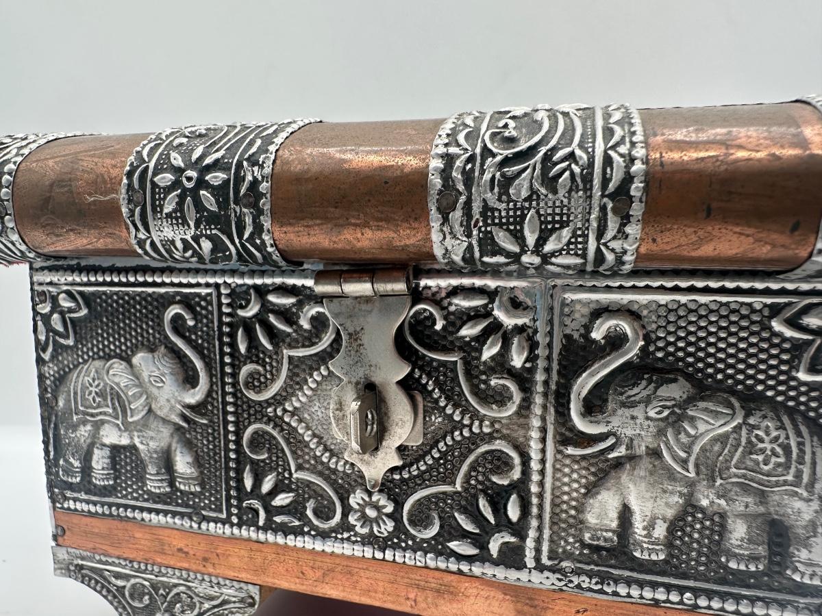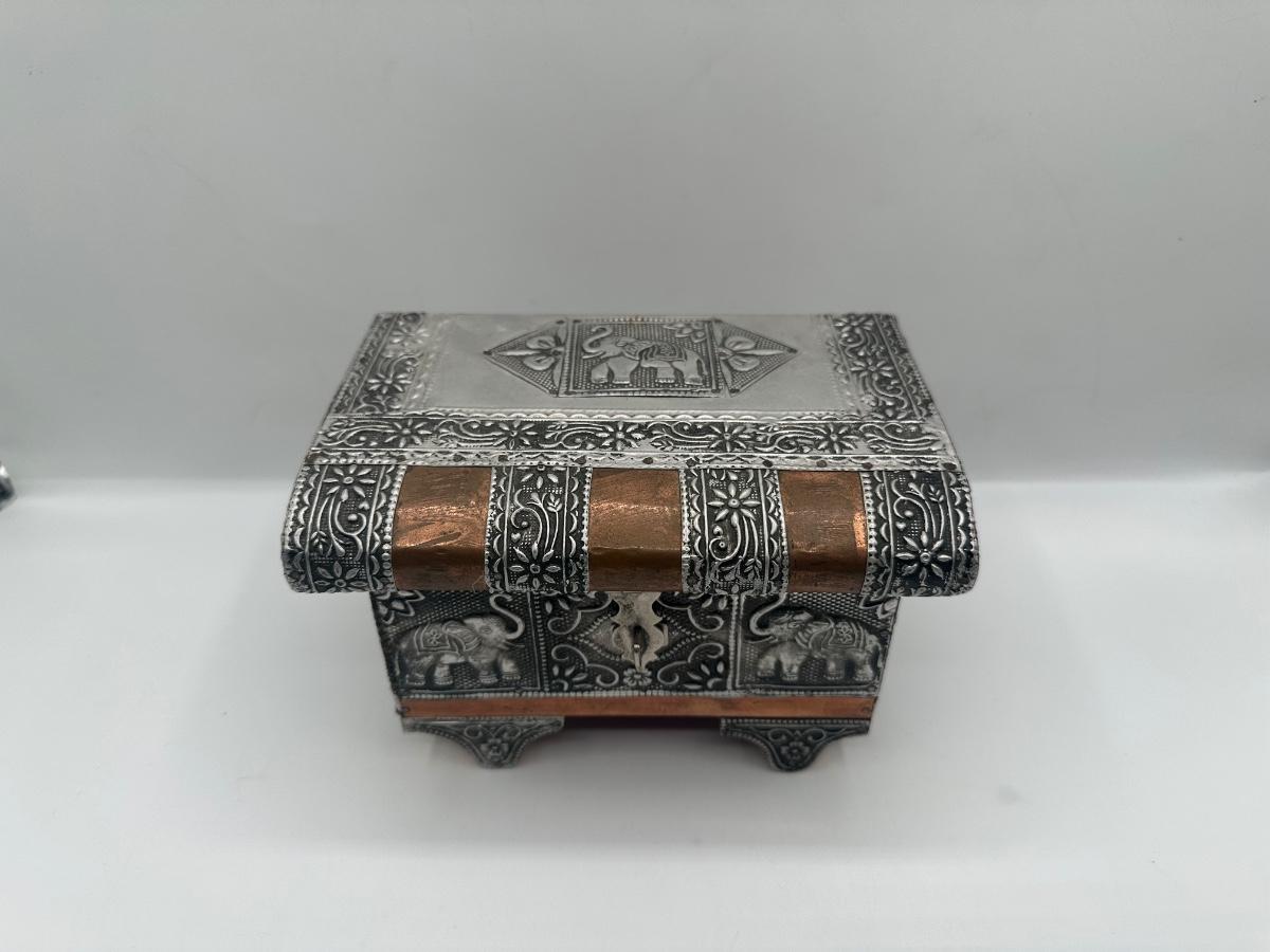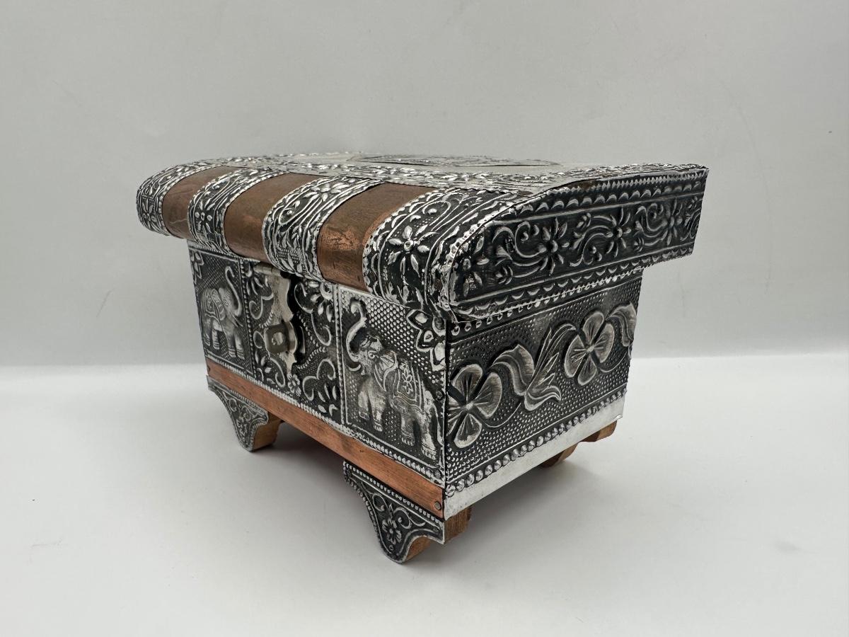 Indian-Style Embossed Metal Elephant Jewelry / Trinket Box