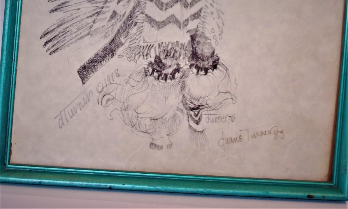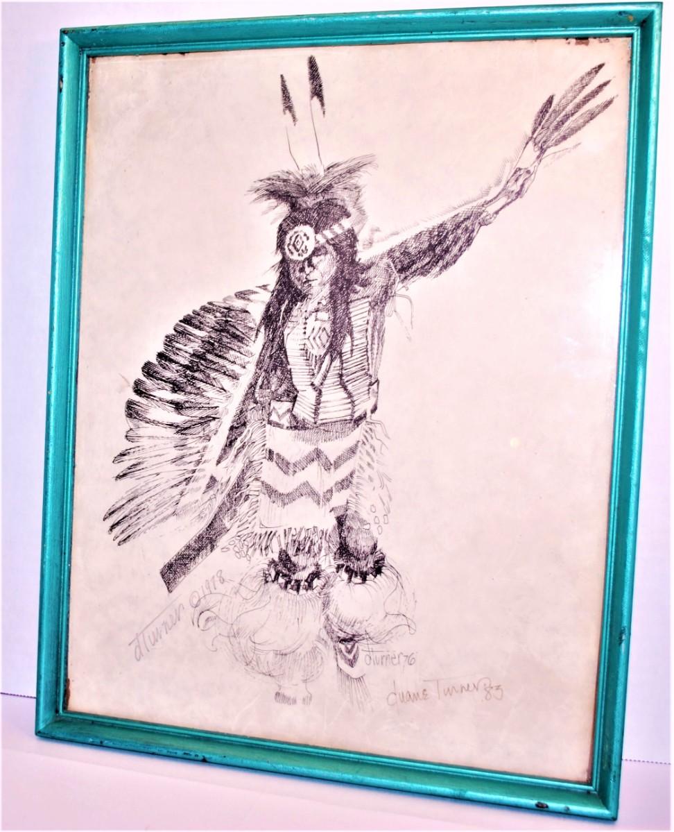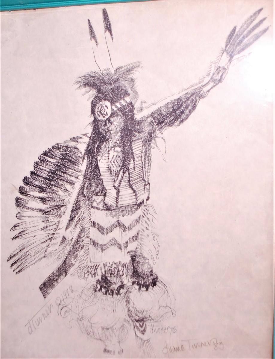 "Indian-Styled" Art Drawing 14 1/2" x 11 1/2" Signed Duane Turner