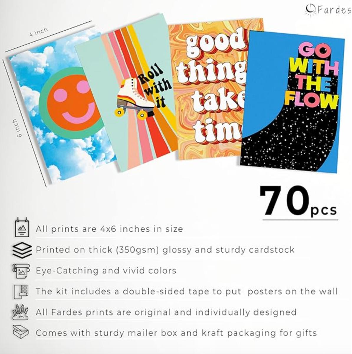 Indie Room Decor Aesthetic Tiktok, 70pcs of Indie Wall Collage Kit Aesthetic Pictures for Bedroom Wall Decor Aesthetic, Eclectic Decor for Cute Room Decor for Teen Girls, Hippie and Y2K Dorm Decor