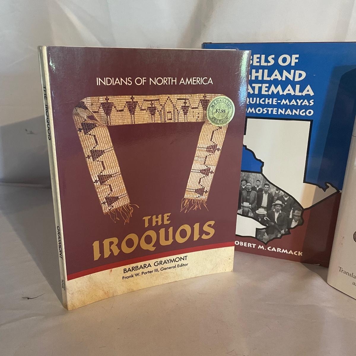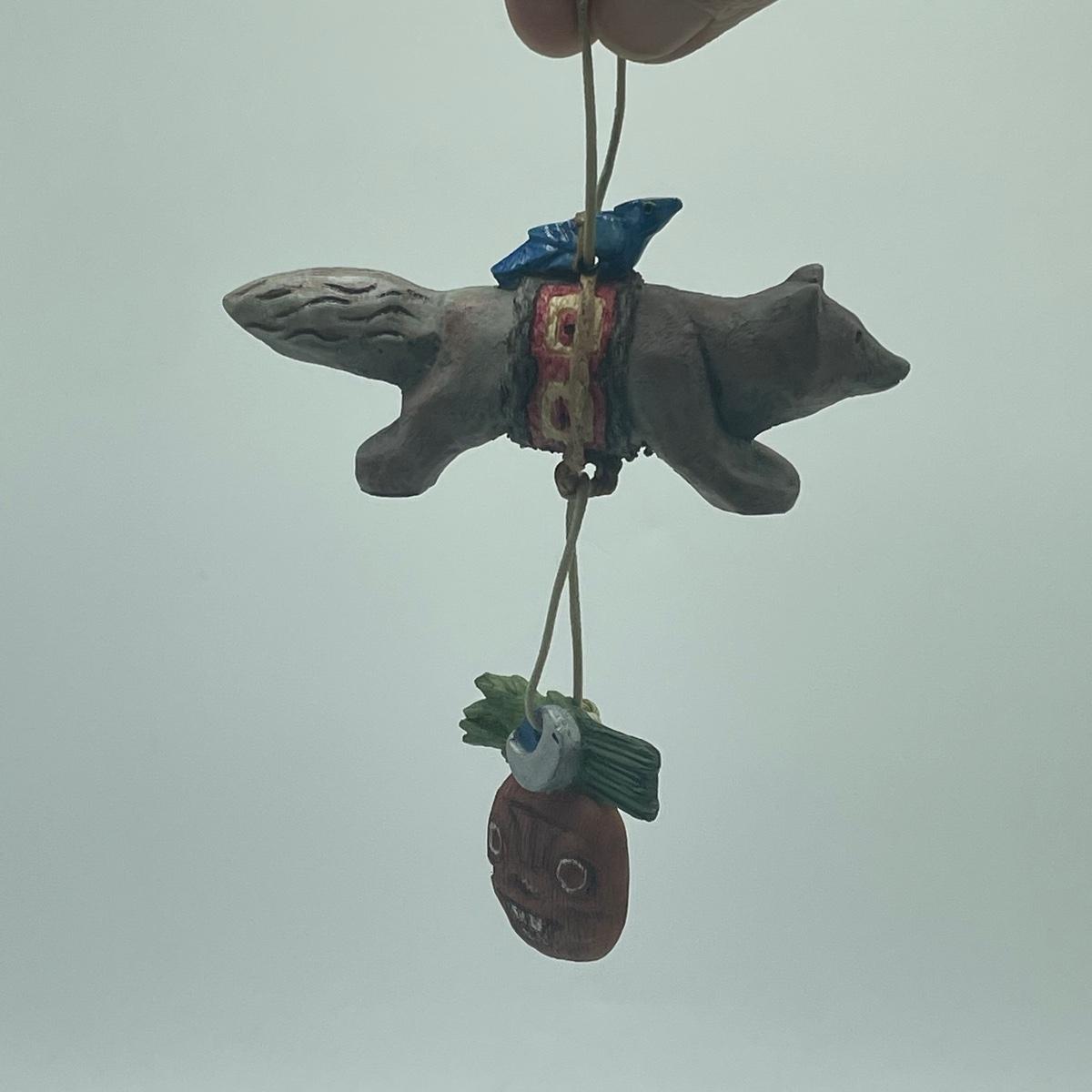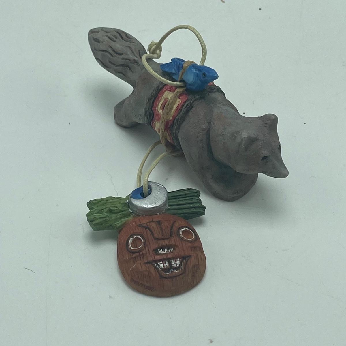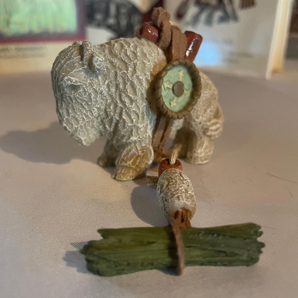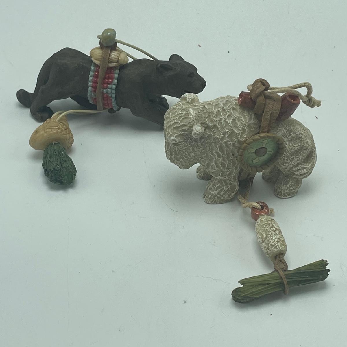 Five hanging figurines here that have been hand labeled and one has the name SNO RHALMIE; they are a lightweight possibly resin material with exquisite detailing. Also included are three books.