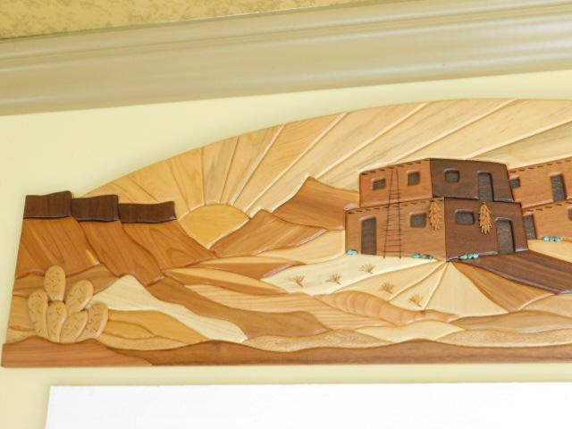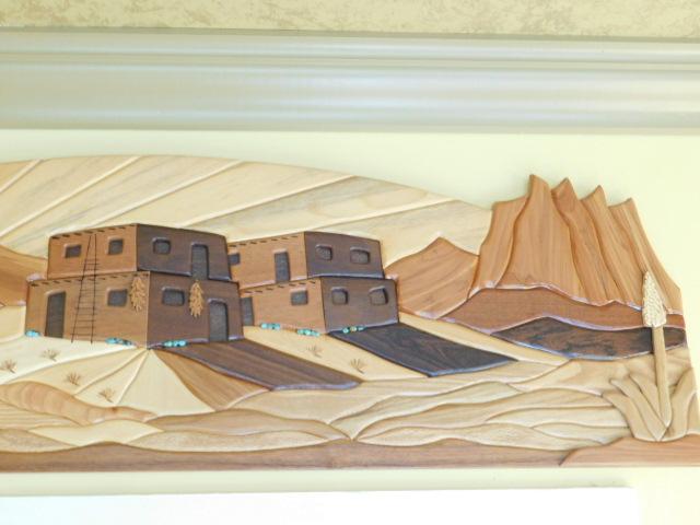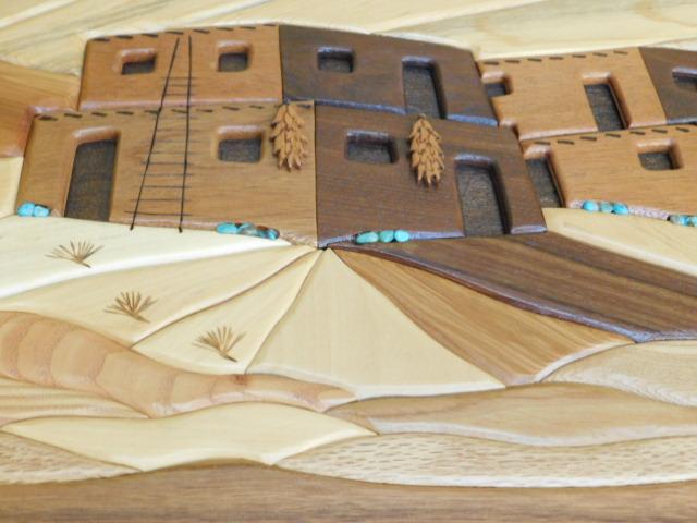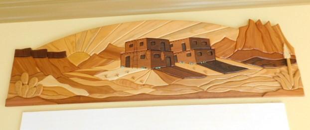 Indigenous Homes in the Desert Wood Intarsia Art 4'