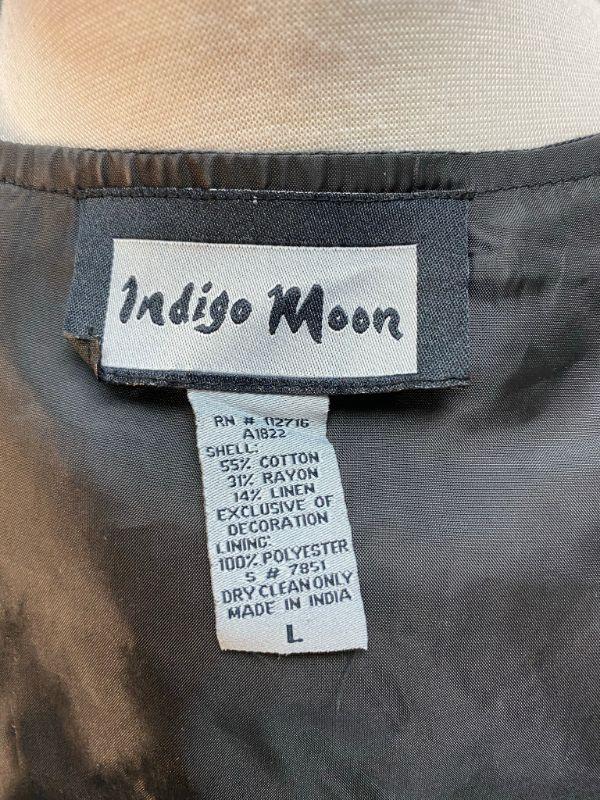 Indigo Moon Black Fringe Edge Patch work Embellished Embroidered Coat Jacket Size L YD#020-1220-02041
