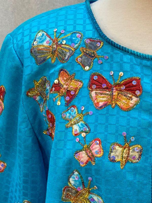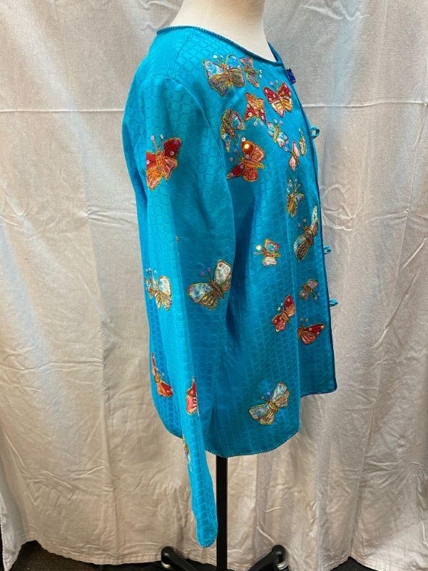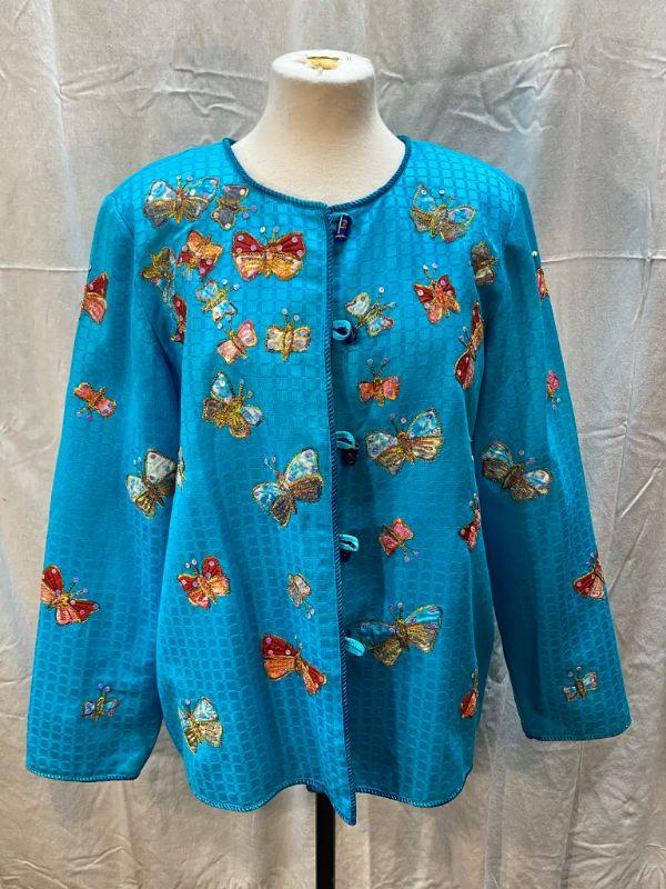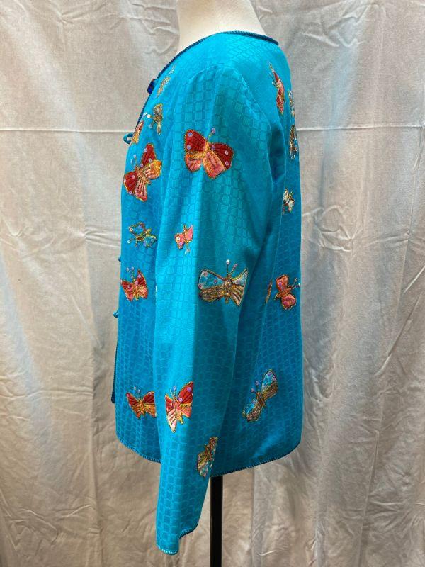 Indigo Moon Bright Blue Butterfly Embellished Jacket Size Medium YD#020-1220-02176