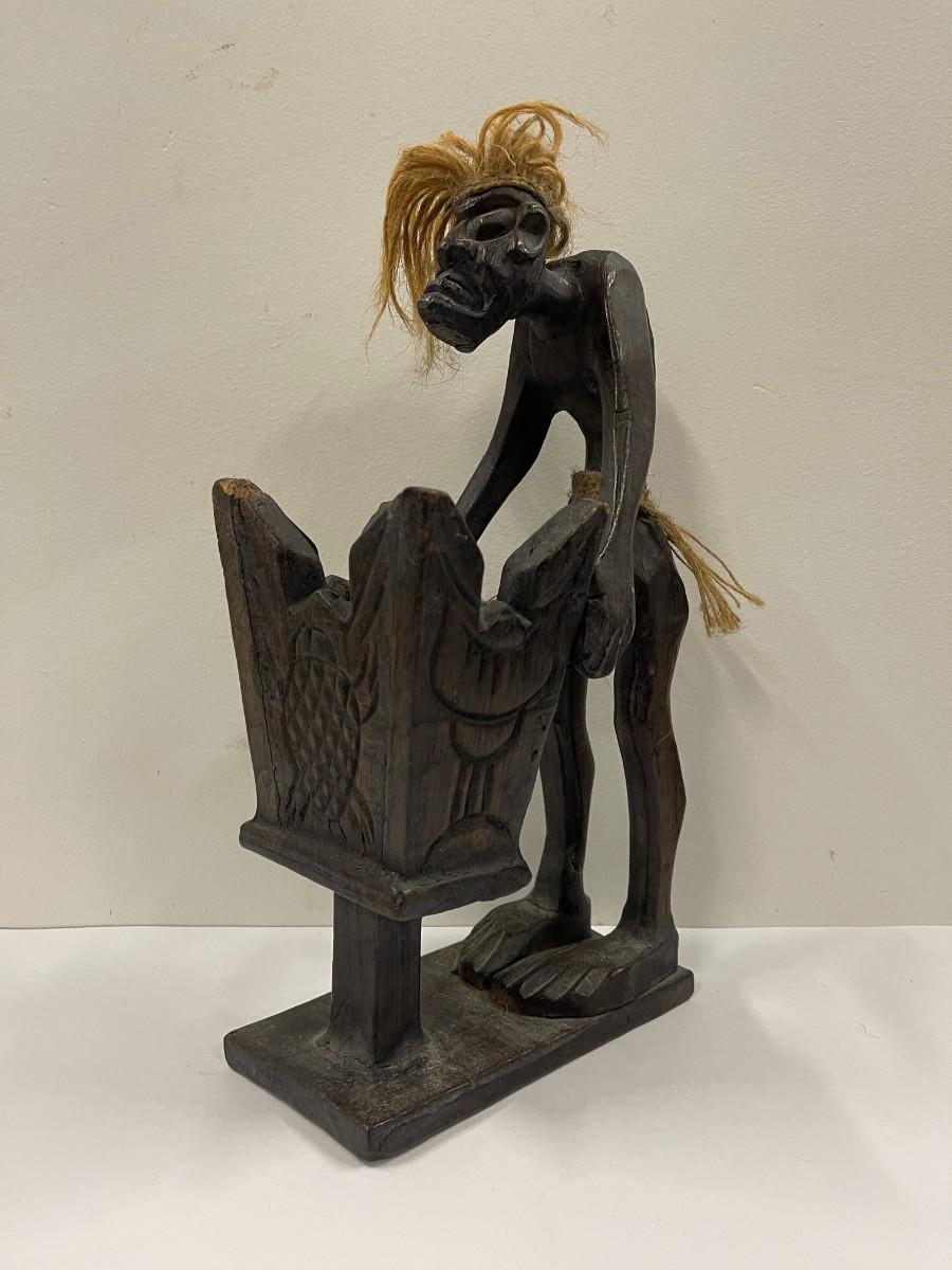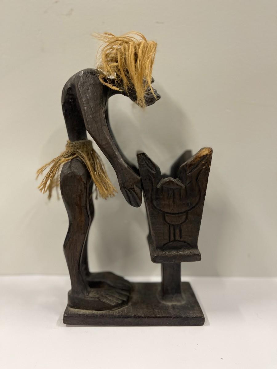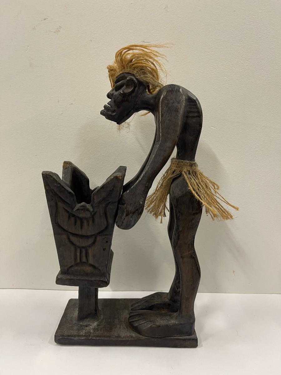 He certainly has presence! We can't get a conclusive answer as to what he is...but, we kinda love'im. Most likely made for the tourist market in the late-20th century. Ideal for a tiki bar, or a small succulent. Approx.: 15" H x 7" D x 4" W # 1060