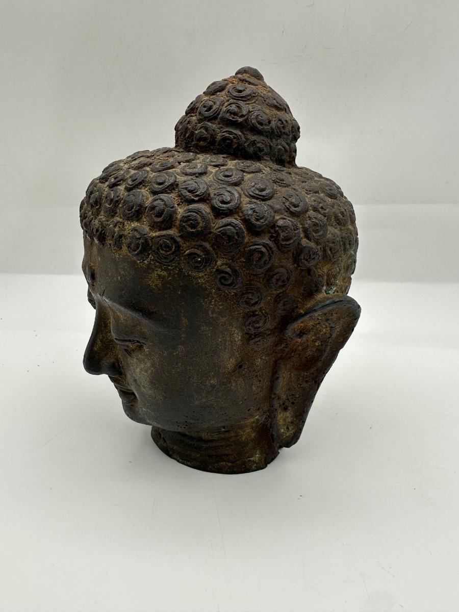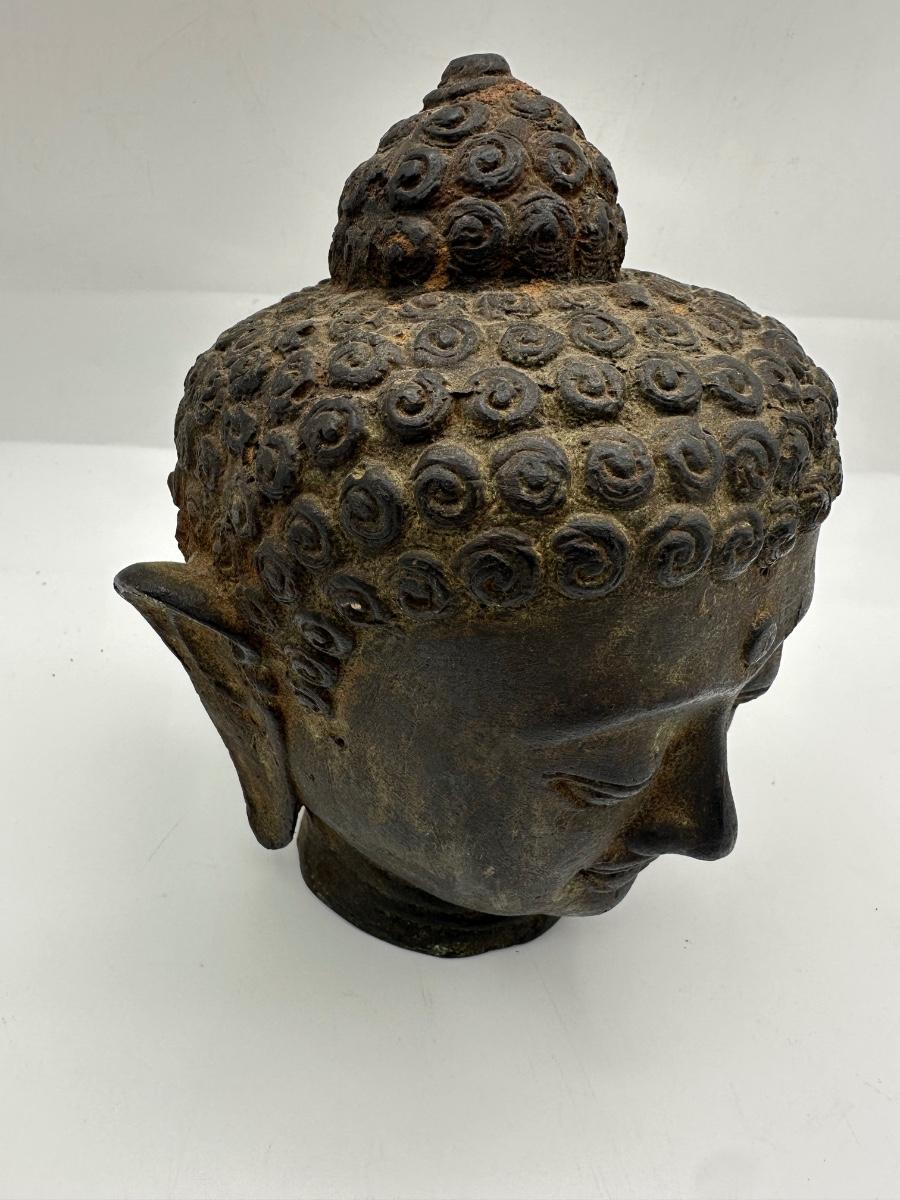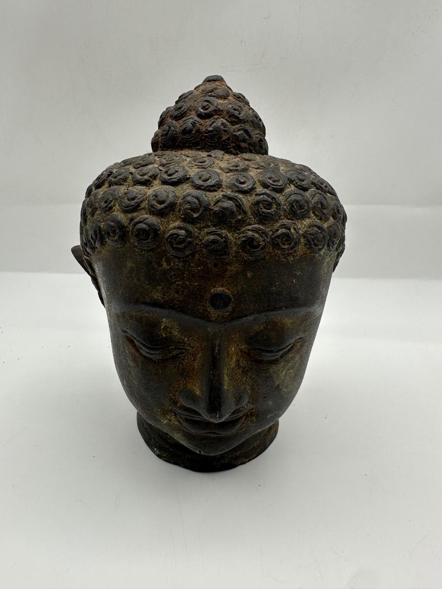 Indonesian Handmade Bronze/ Iron Buddha Head Statue, Buddha Tranquility Head
