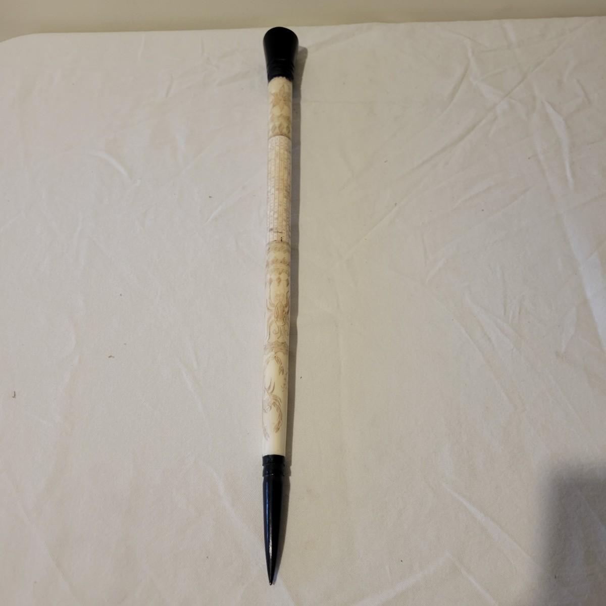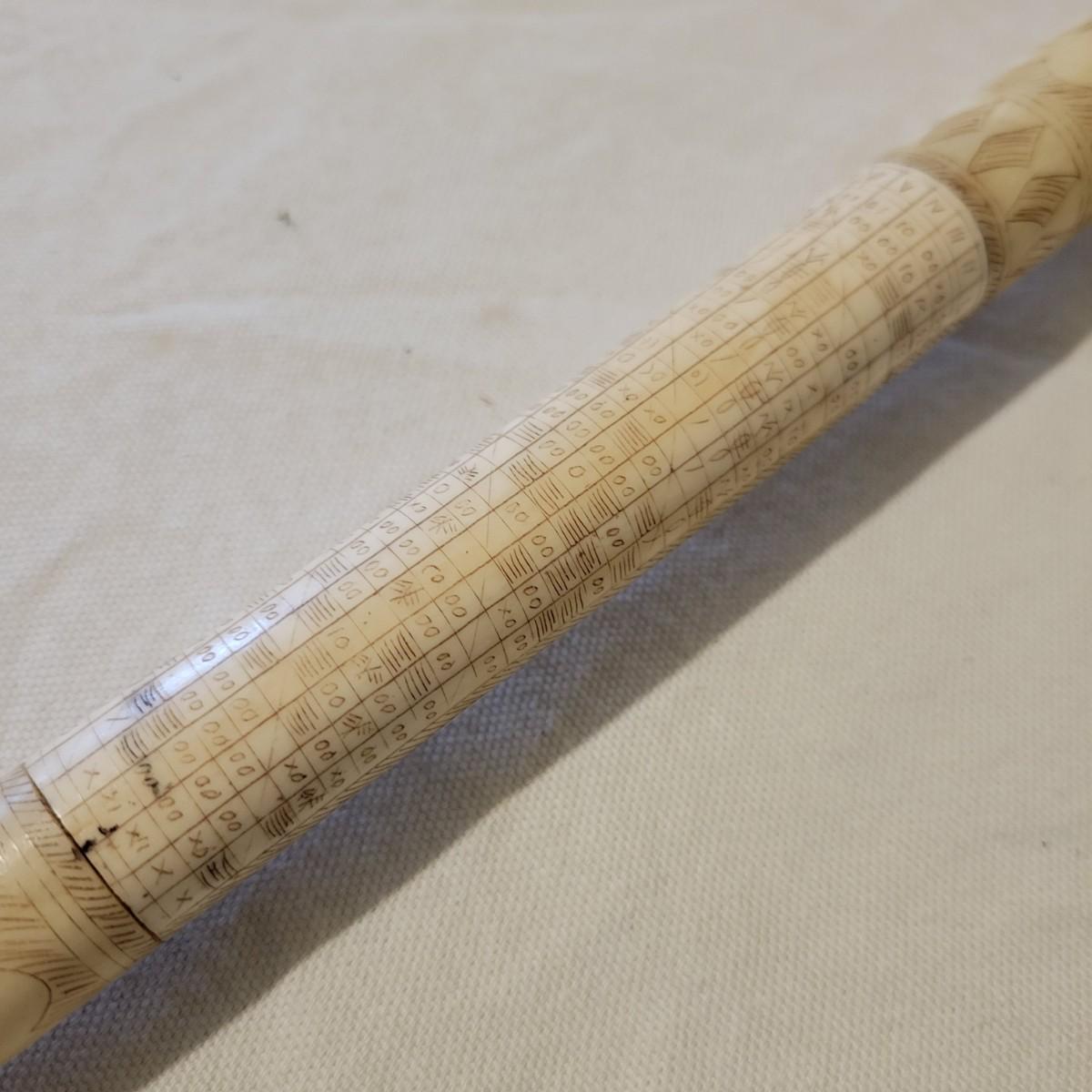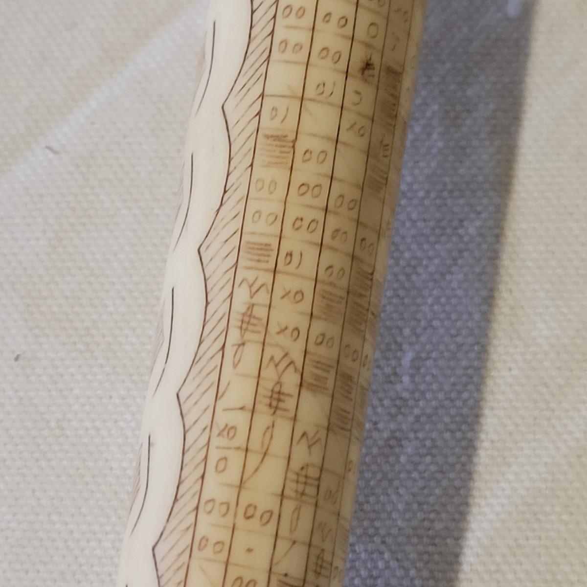 This is what appears to be an Indonesian star chart engraved on a bone-like wand. It measures approximately 19" in length. Local pickup only.