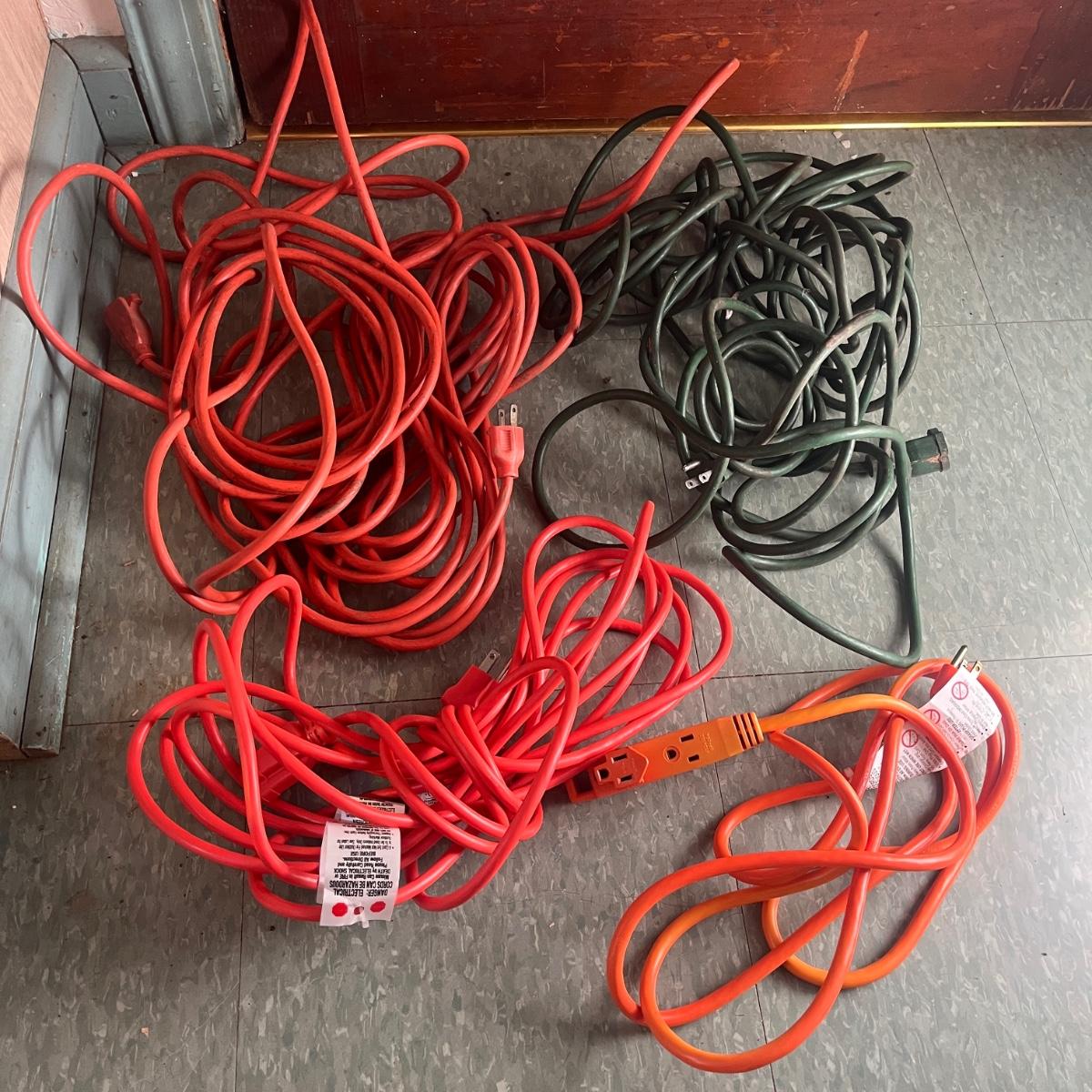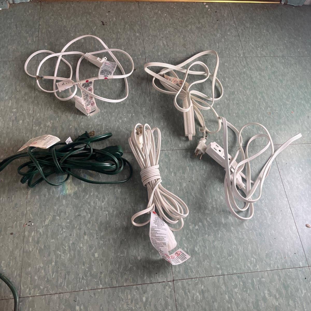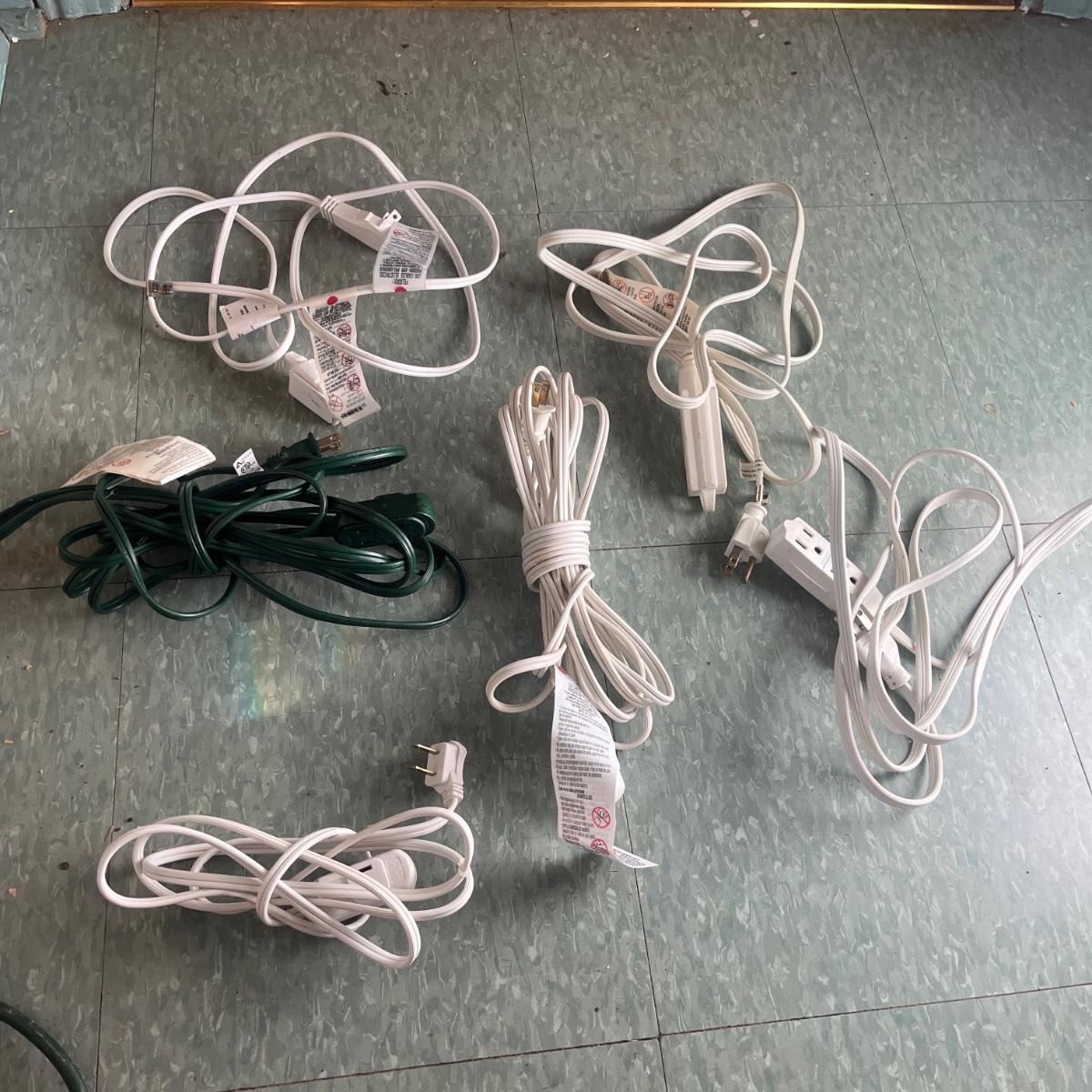 Lot includes four outdoor extension cords, five indoor extension cords and four power strips.