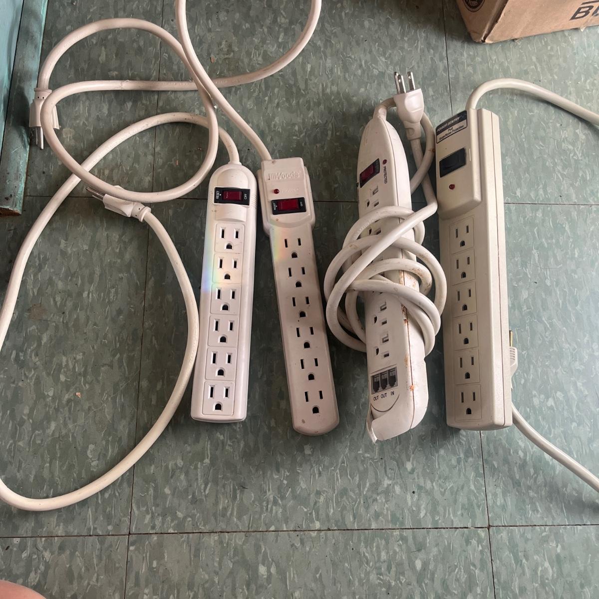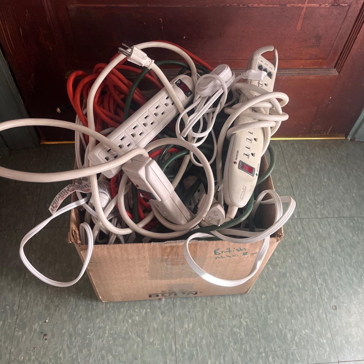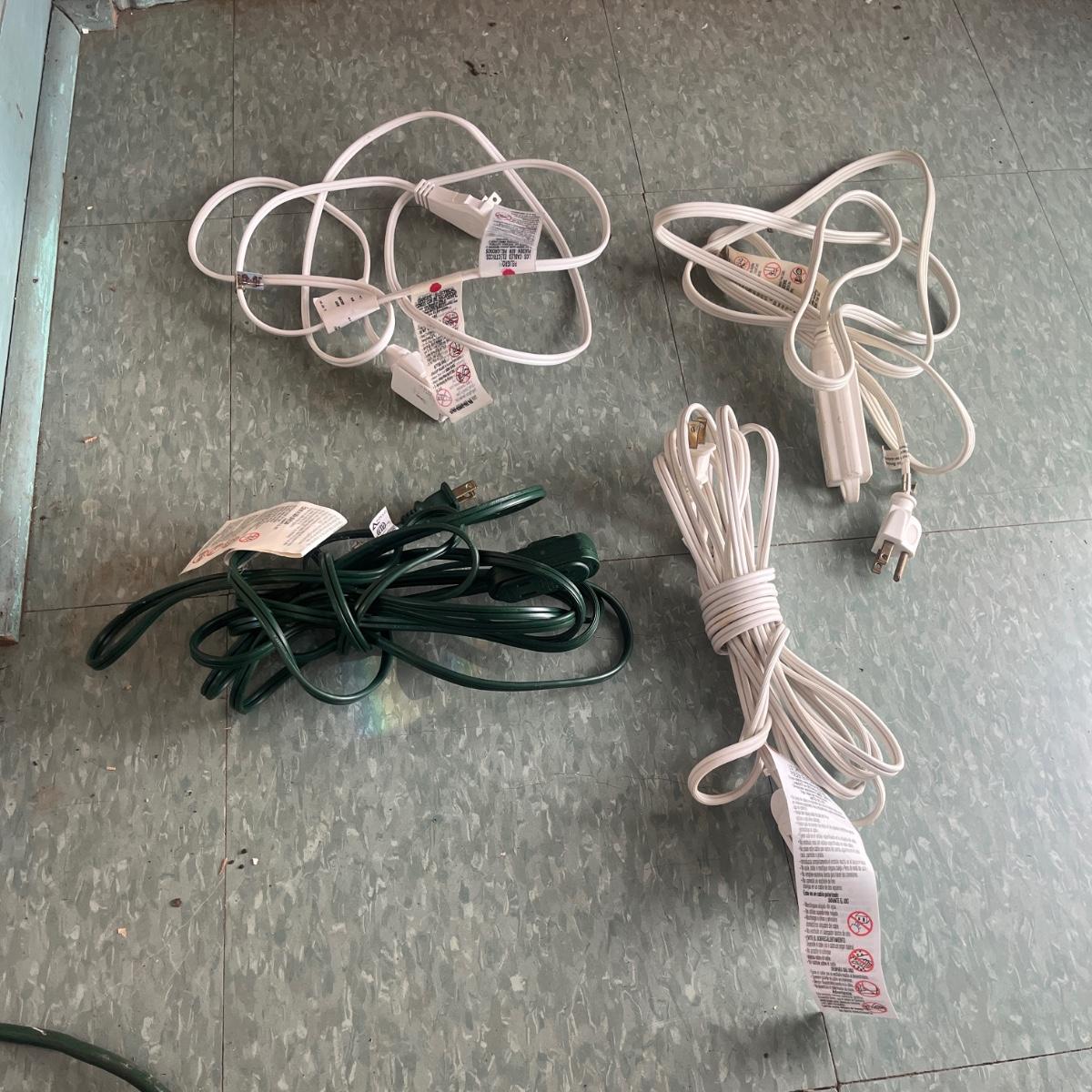 Lot includes four outdoor extension cords, five indoor extension cords and four power strips.