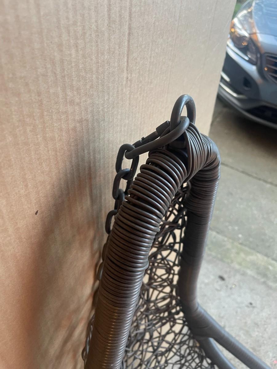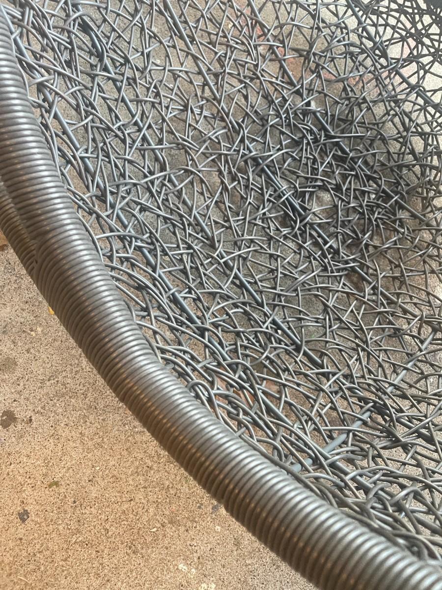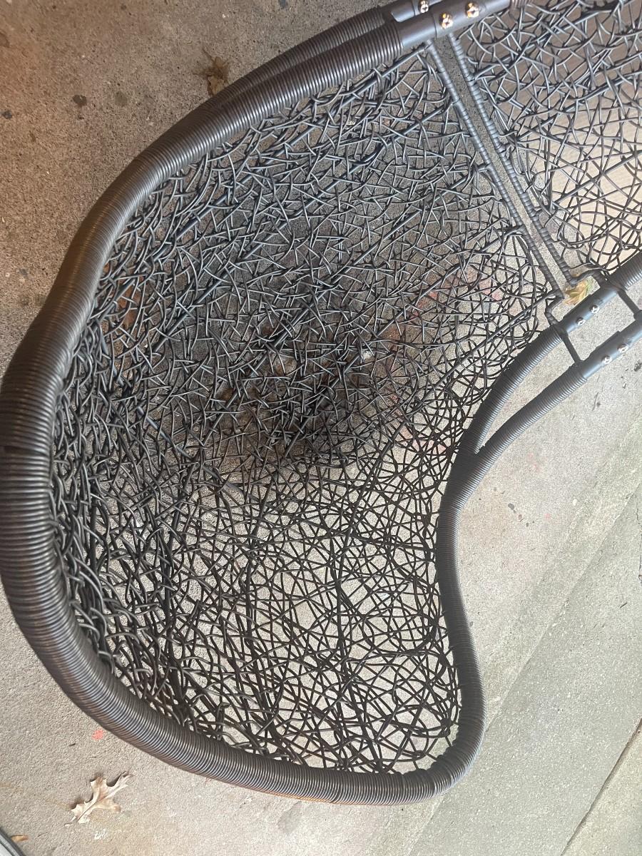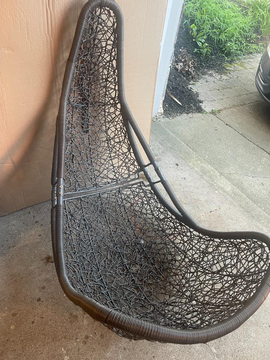 Indoor/outdoor resin swing in like new condition. Comes with white cushion, also in like new condition.