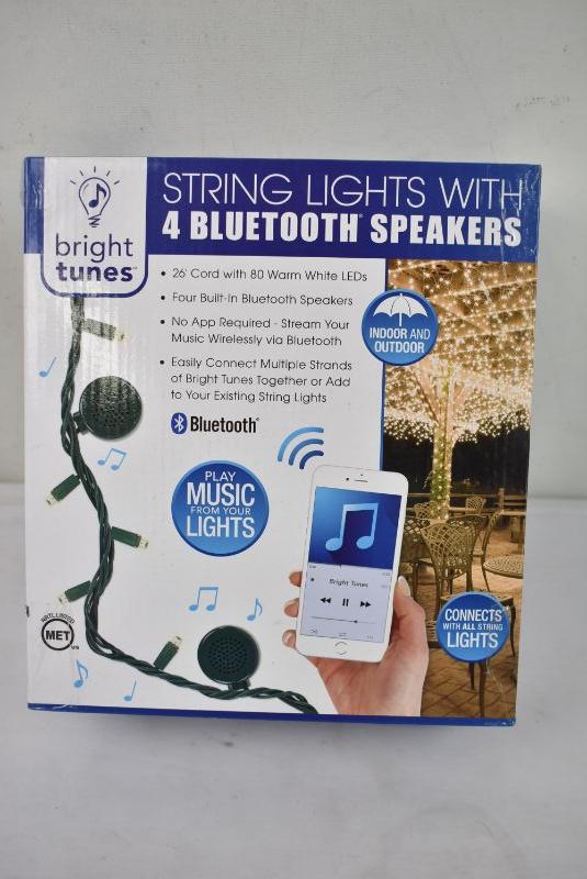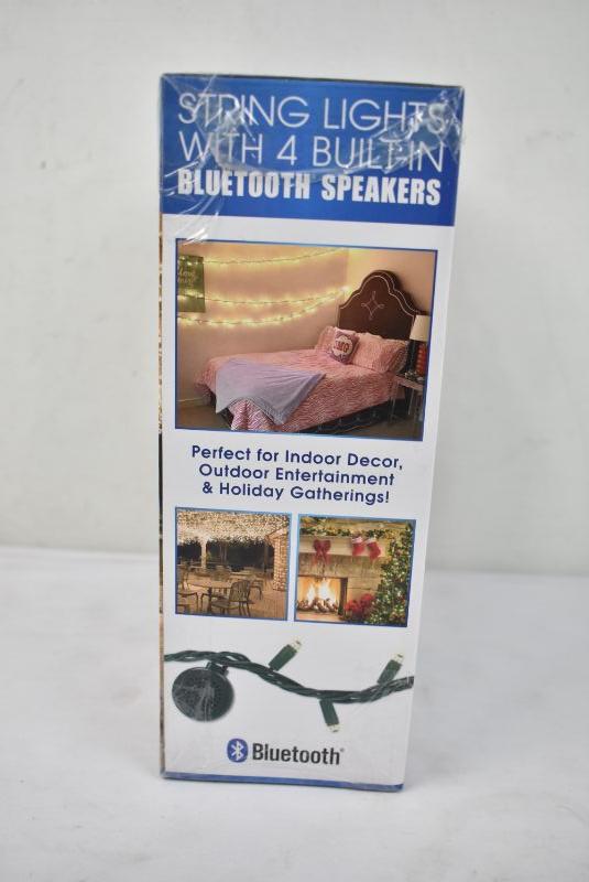Indoor/Outdoor White LED String Lights w/ Bluetooth Speakers, $25 Retail - New