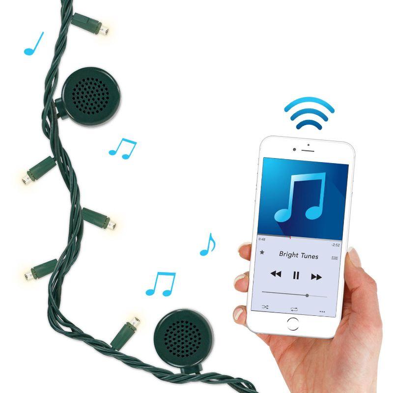 Bright Tunes Indoor/Outdoor White LED String Lights with Bluetooth Speakers, Green Cord, $25 Retail - New