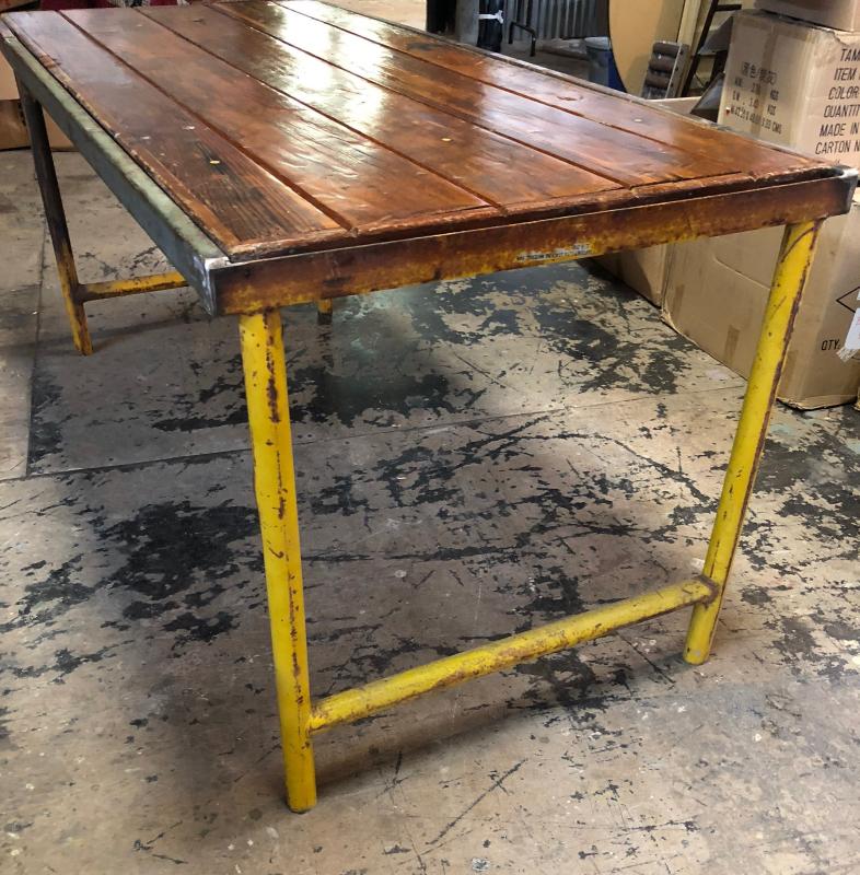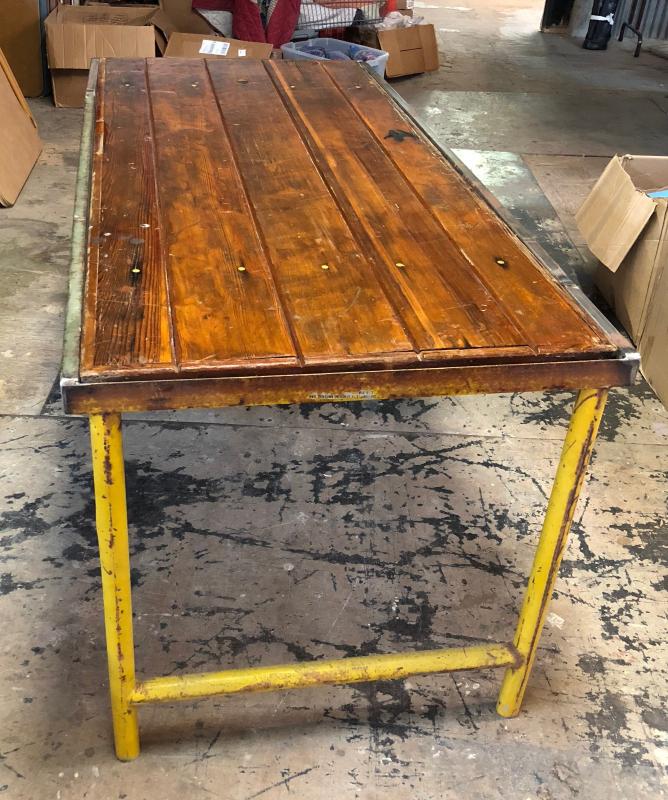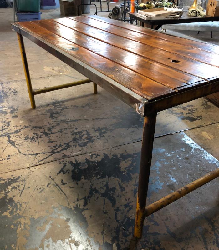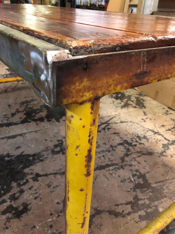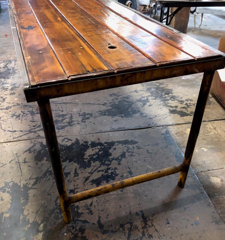 Welded iron legged counter height island or table...A nice modern industrial style piece...73 x 34 x 34"...