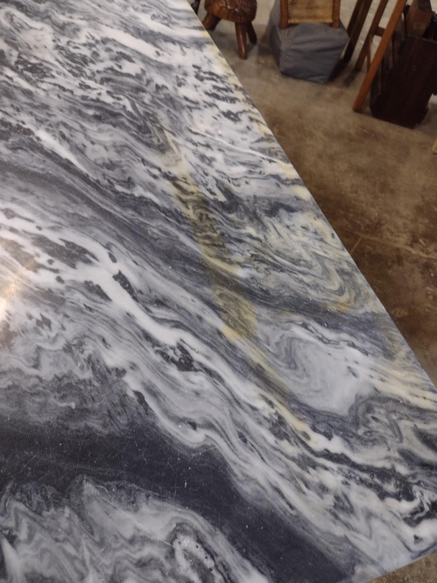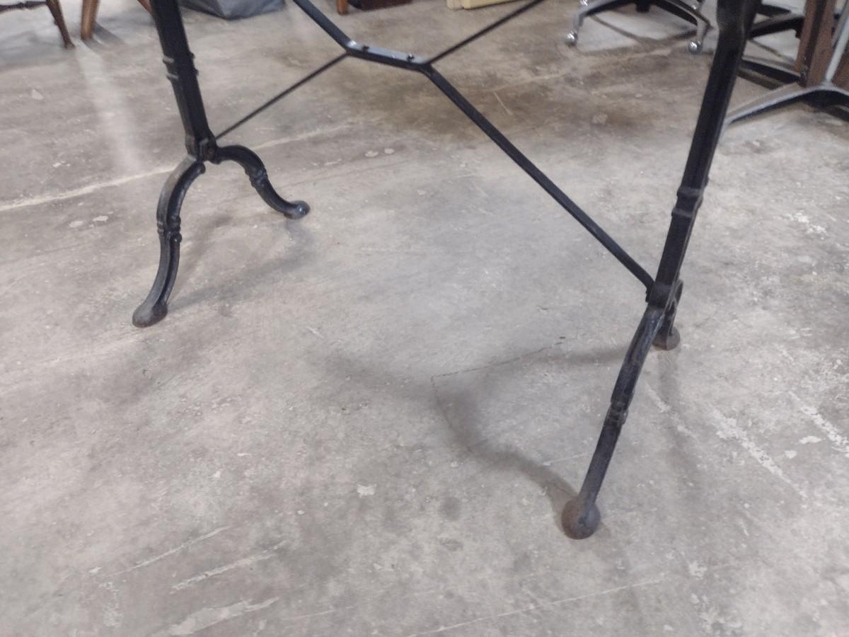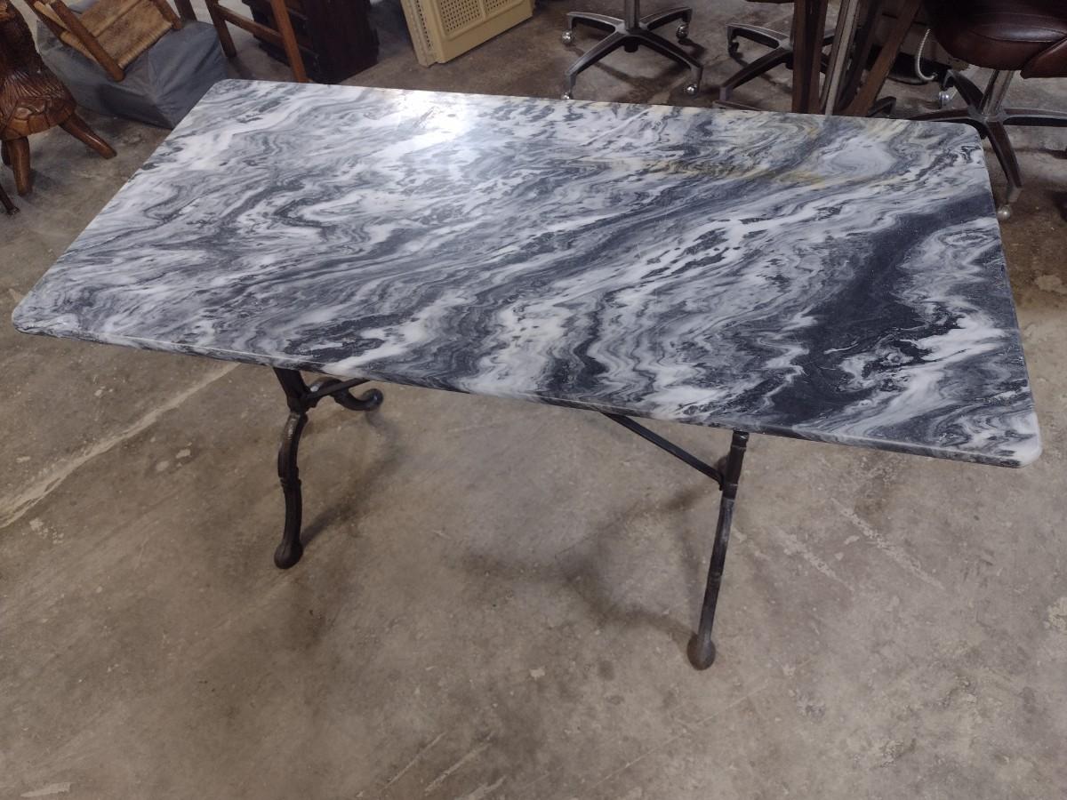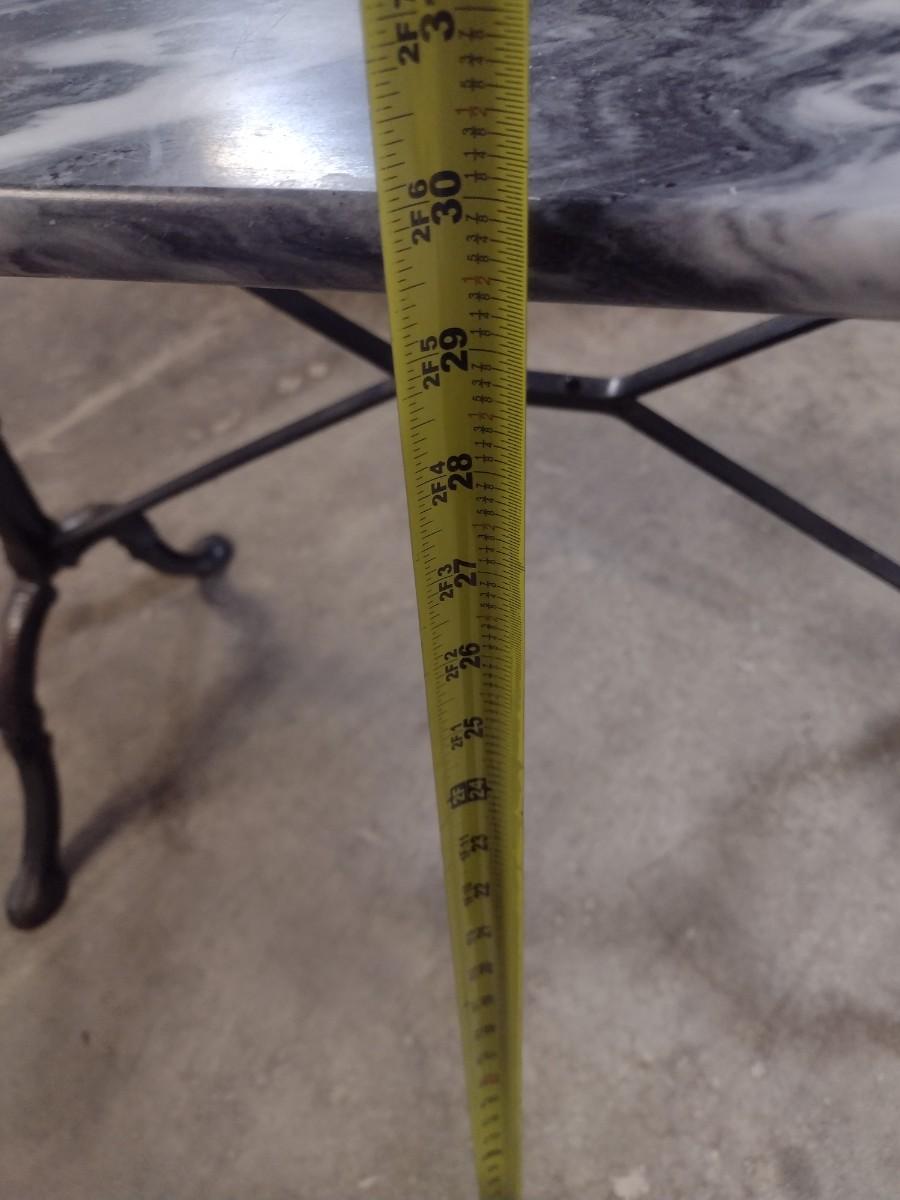 Industrial Design Metal Frame Base Marble Top Table (Two Piece) marble has some staining as shown.