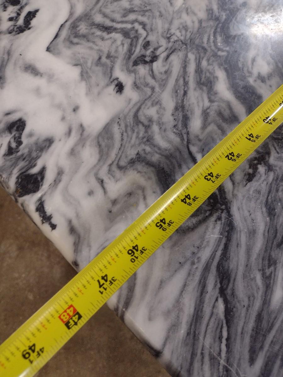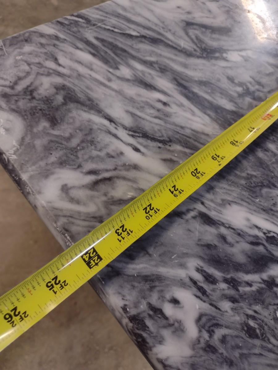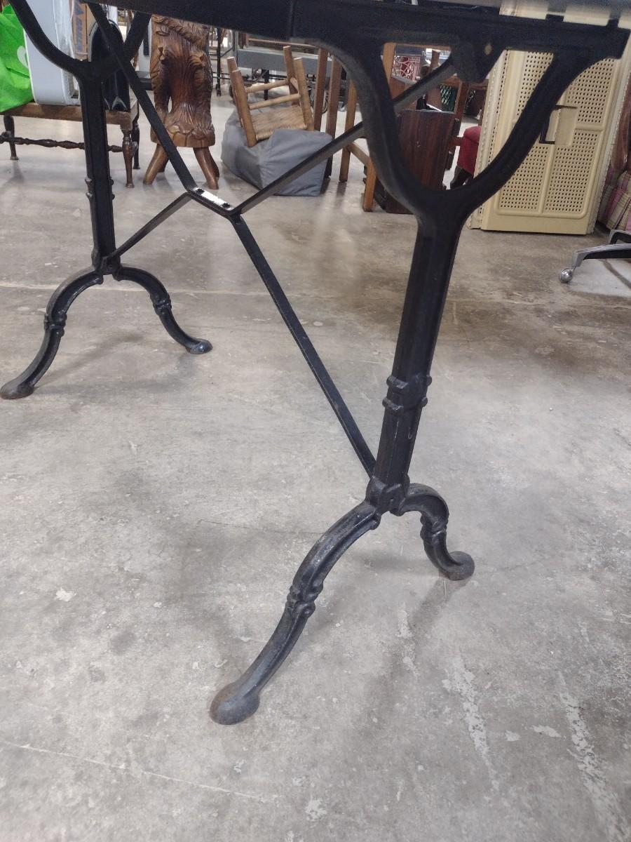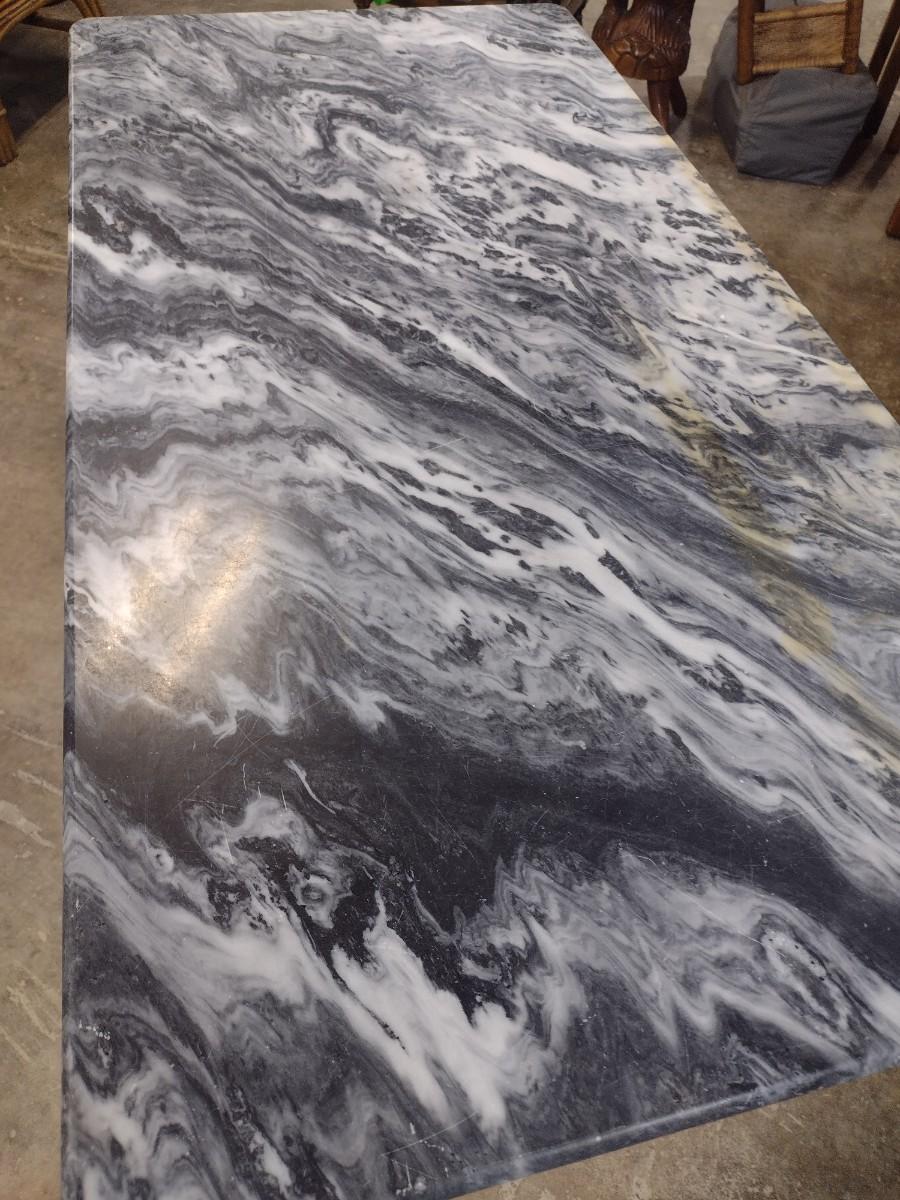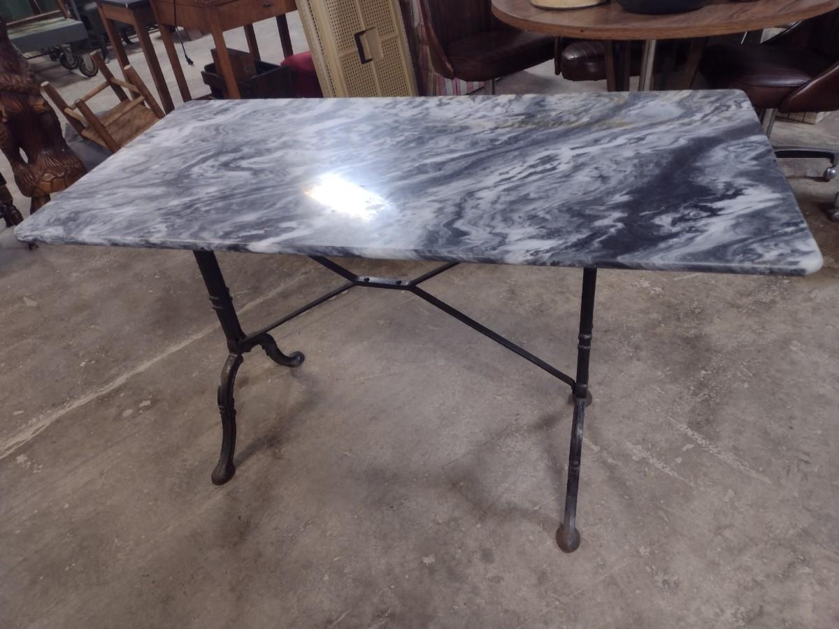 Industrial Design Metal Frame Base Marble Top Table (Two Piece) marble has some staining as shown.
