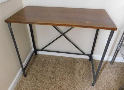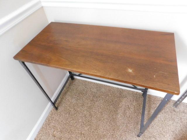 Industrial Metal Frame Work Table with Walnut Wood Top 36"x18"x31" has some wear and scratches to the surface