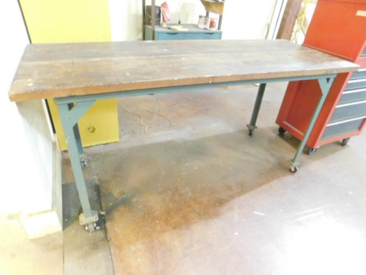 Industrial Metal Frame Work Table with Wood Slab Surface