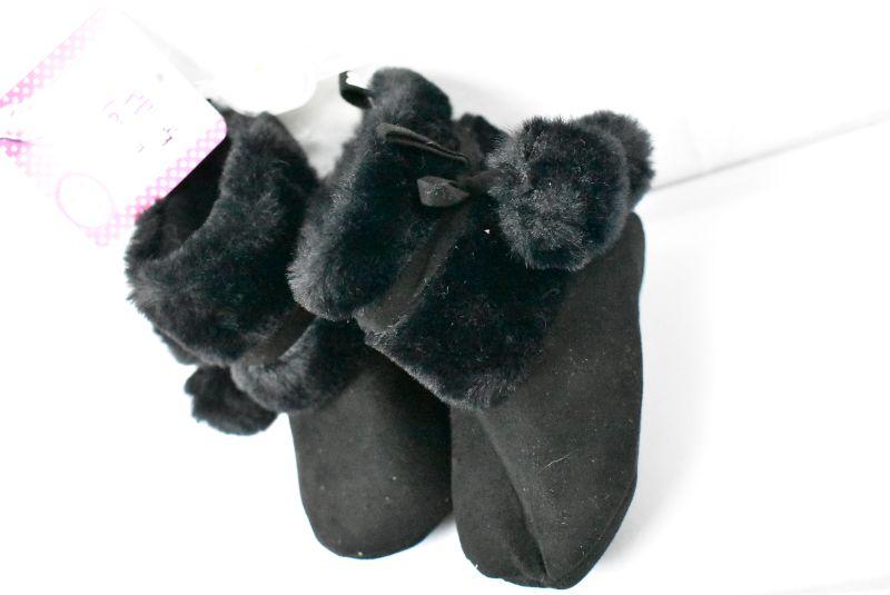 Infant Snow Boots, Faux Fur Black, Size 4 (9-12m) - New