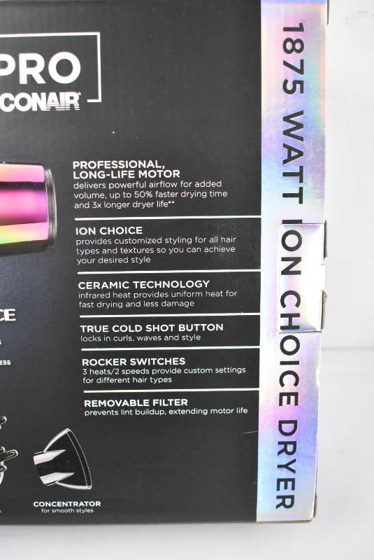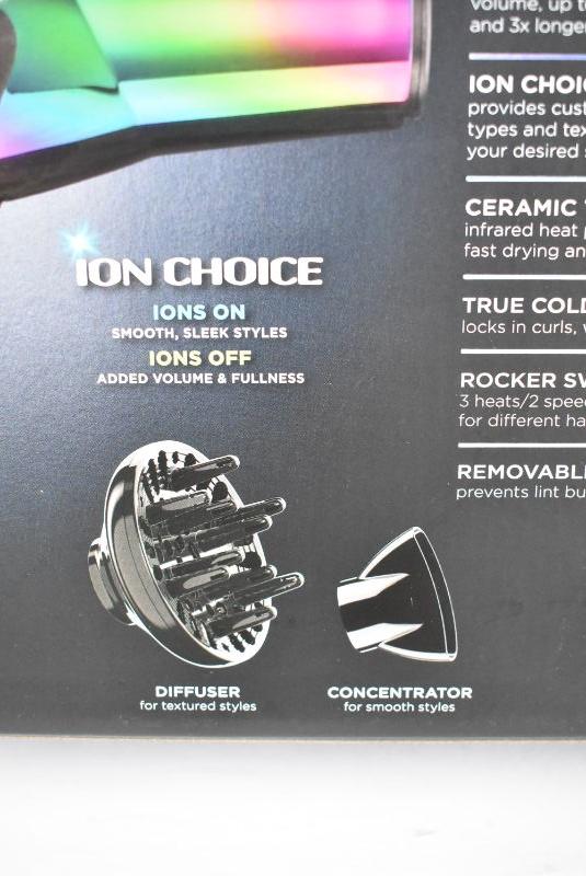 InfinitiPro by Conair Ion Choice Hair Dryer, 1875 Watt, Rainbow, Model 490, $41 Retail - New