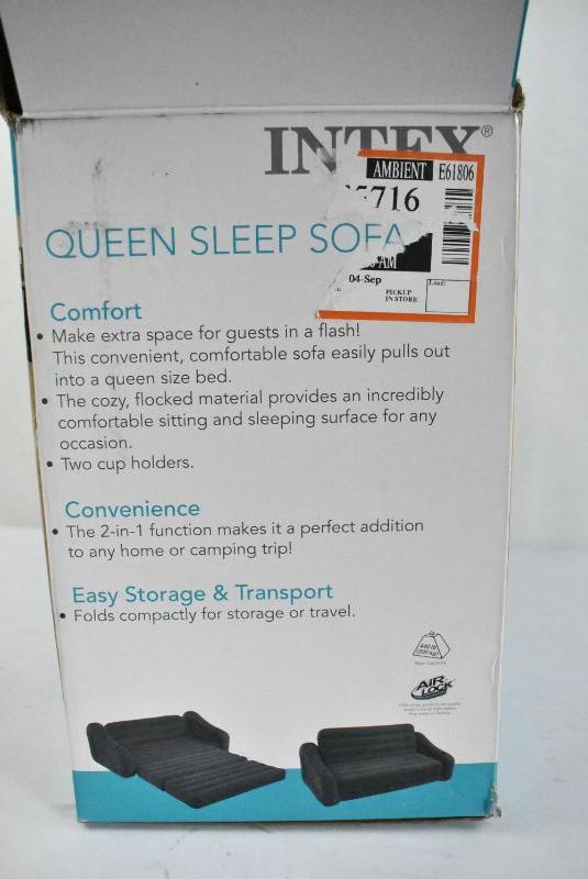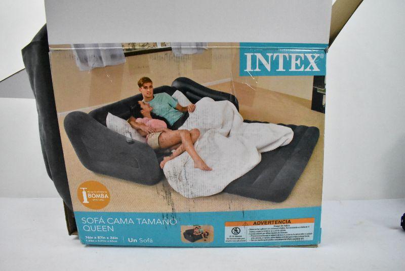 Intex Inflatable 2-in-1 Pull-Out Sofa Couch & Queen Air Mattress Futon, Gray - Has Small Hole, Repairable