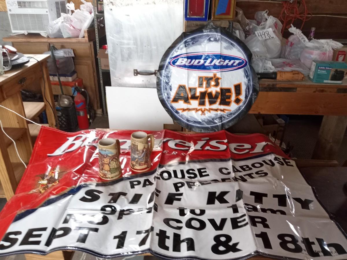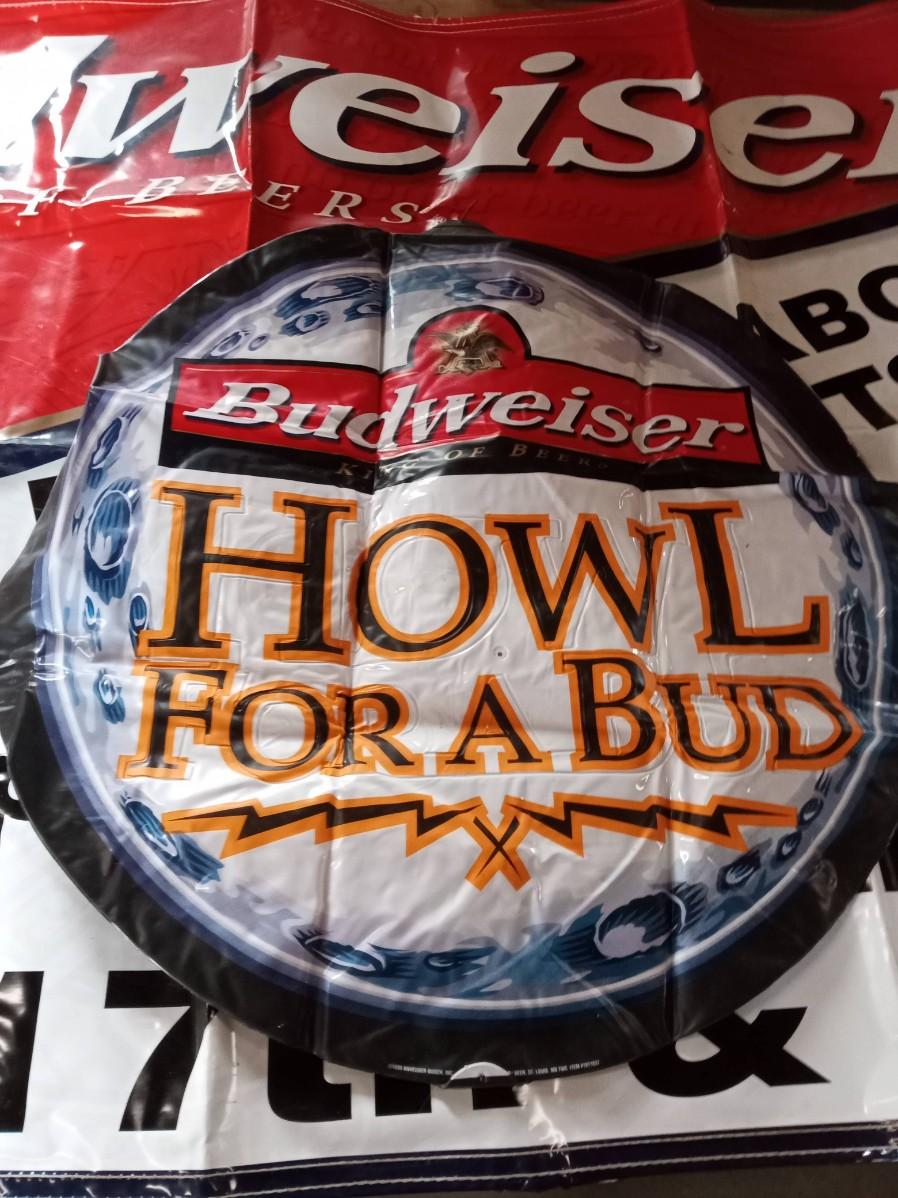 THE BANNER IS A THICK PLASTIC AND MEASURES 58" X 35"