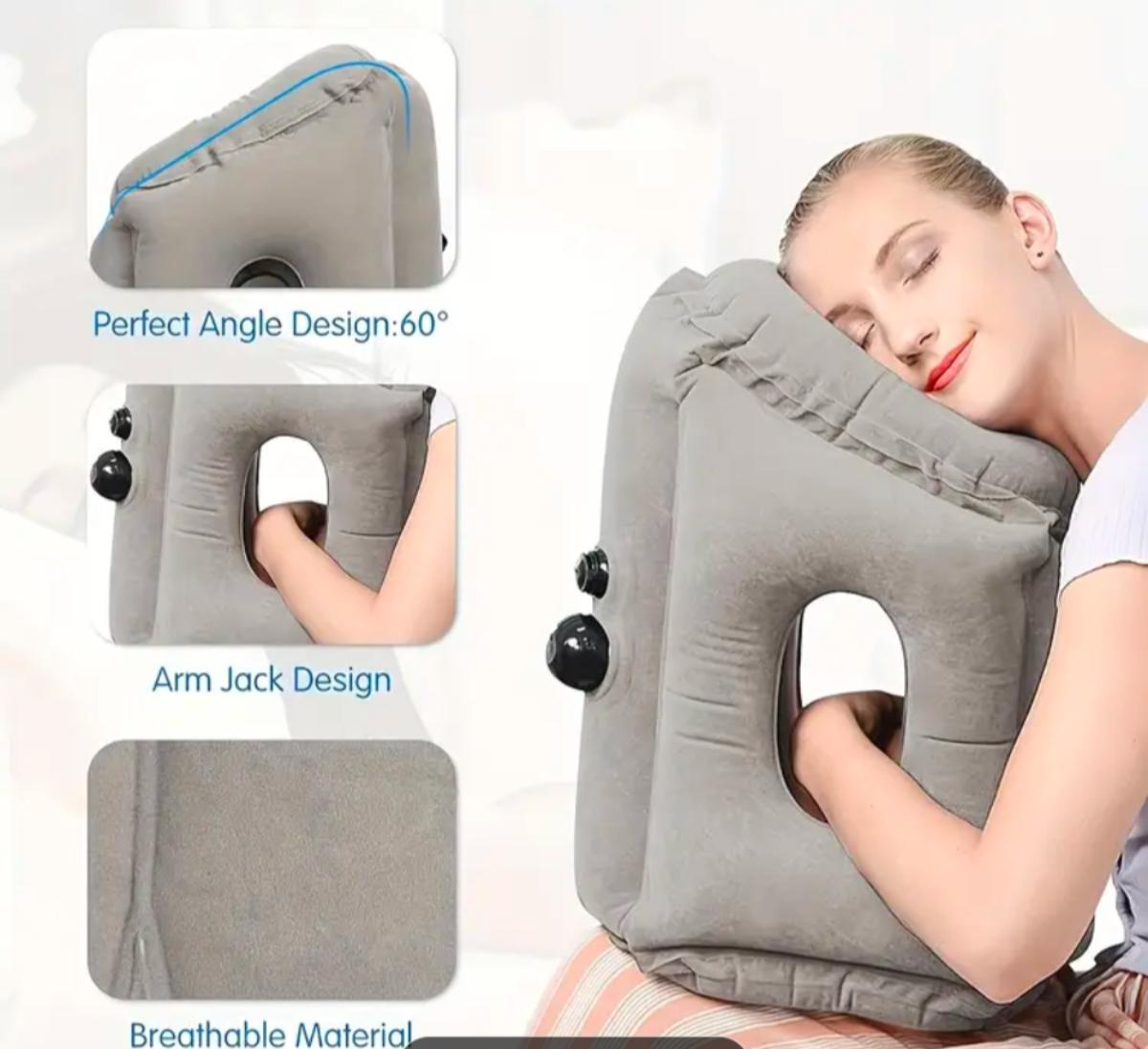 Inflatable Travel Pillow with Arm Hole and Face Support Portable Neck Rest Cushion