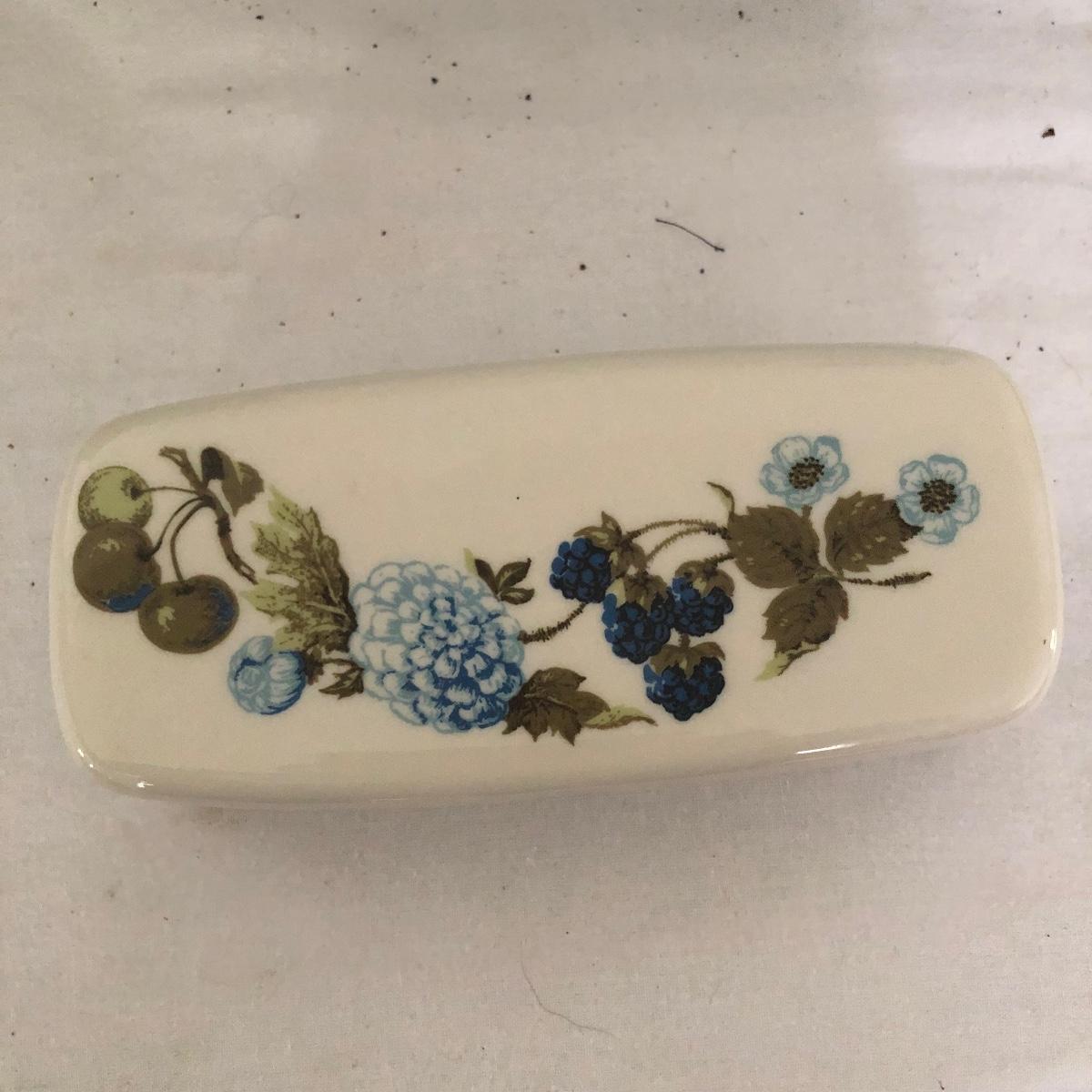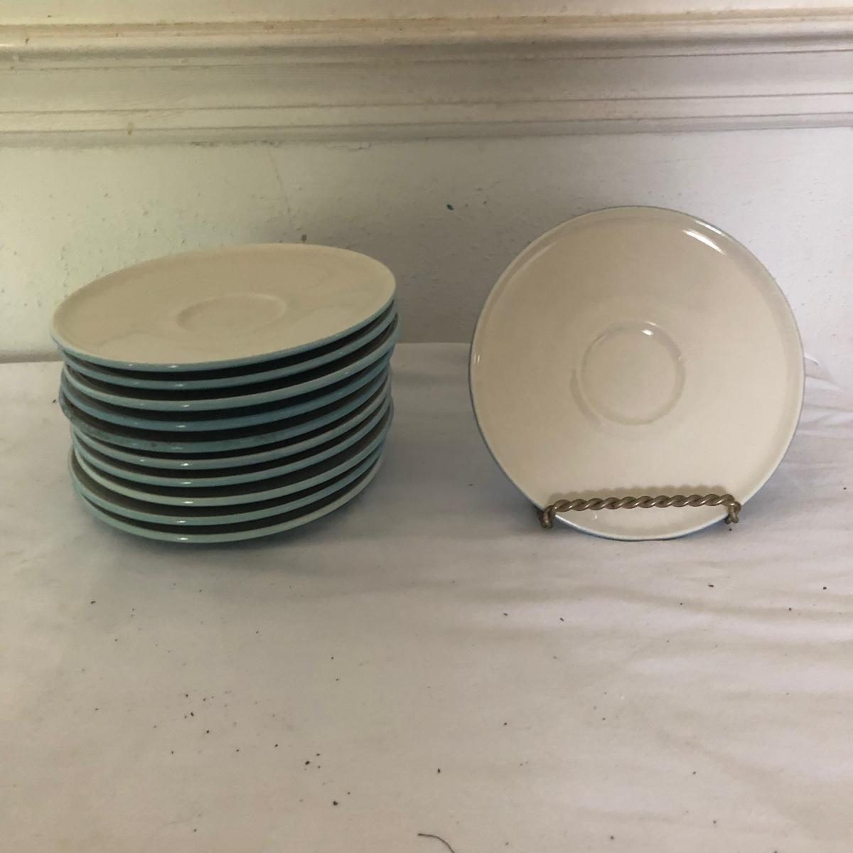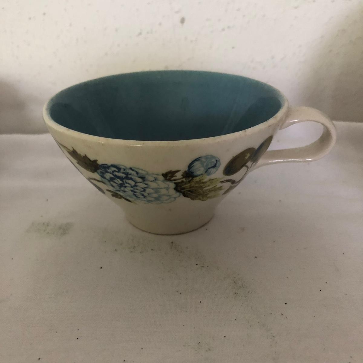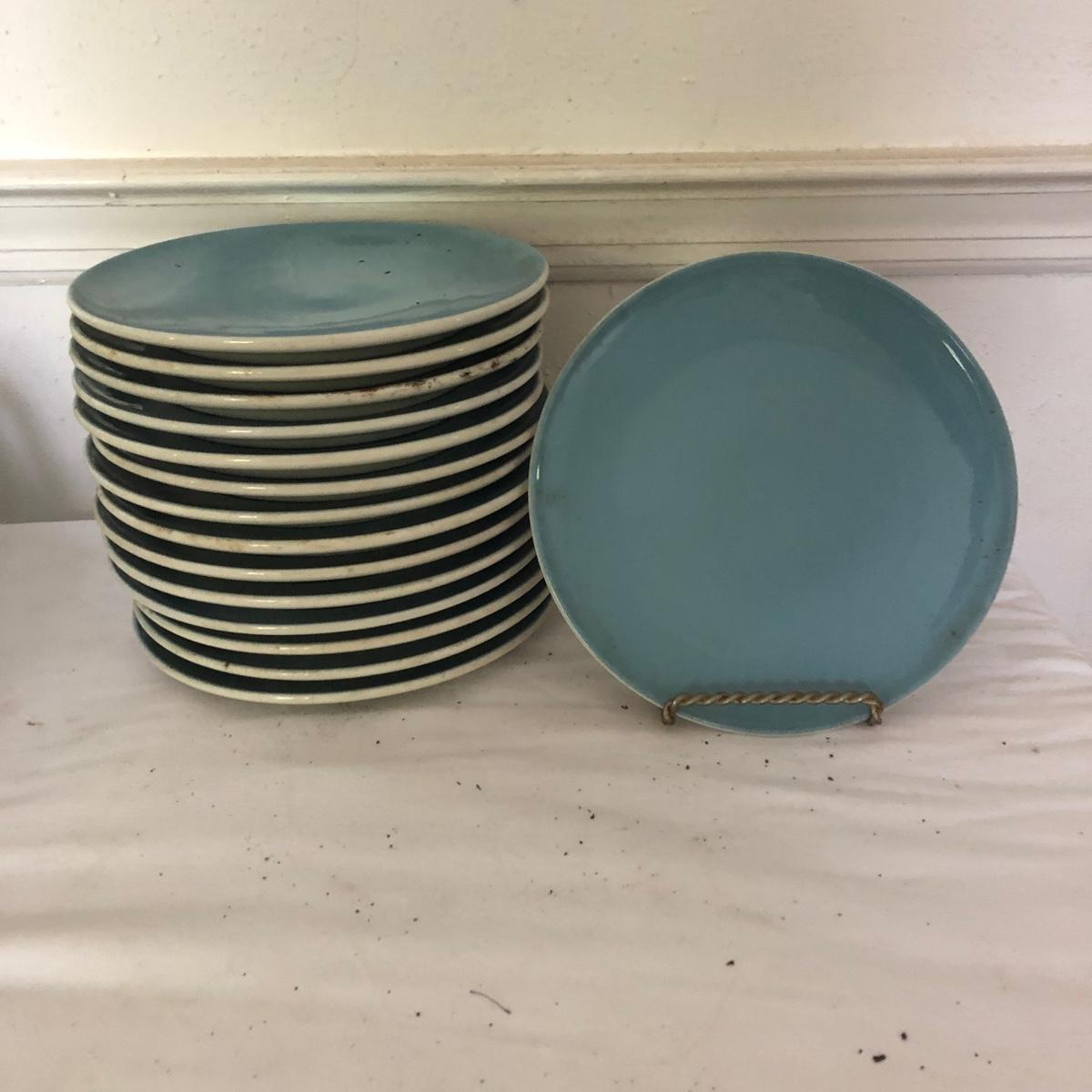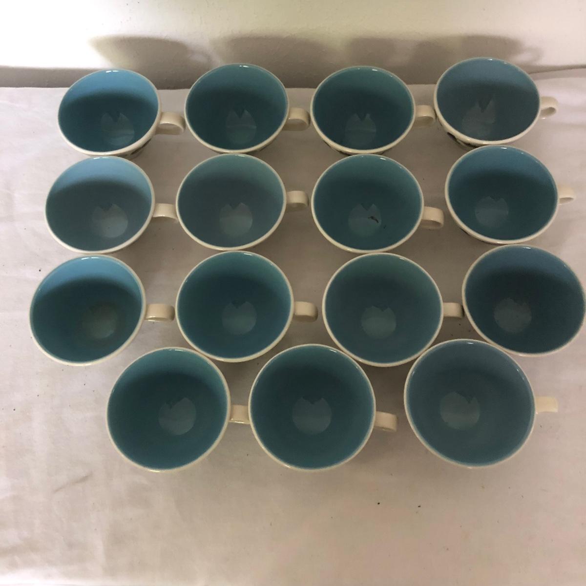 Lot includes Informal True China by Iroquois in the Vineyard pattern. Includes fifteen salad plates, nineteen dinner plates, fifteen cups, eleven saucers, three bowls, platter, serving dish, creamer, sugar bowl and a butter dish that is missing bottom piece.