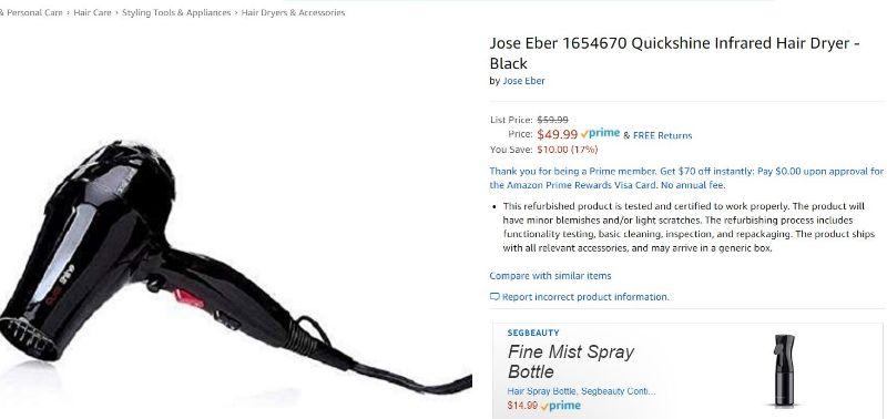 Infrared Blow Dryer, QuickShine, Jose Eber - New, Open Box, Sale @ Amazon $50