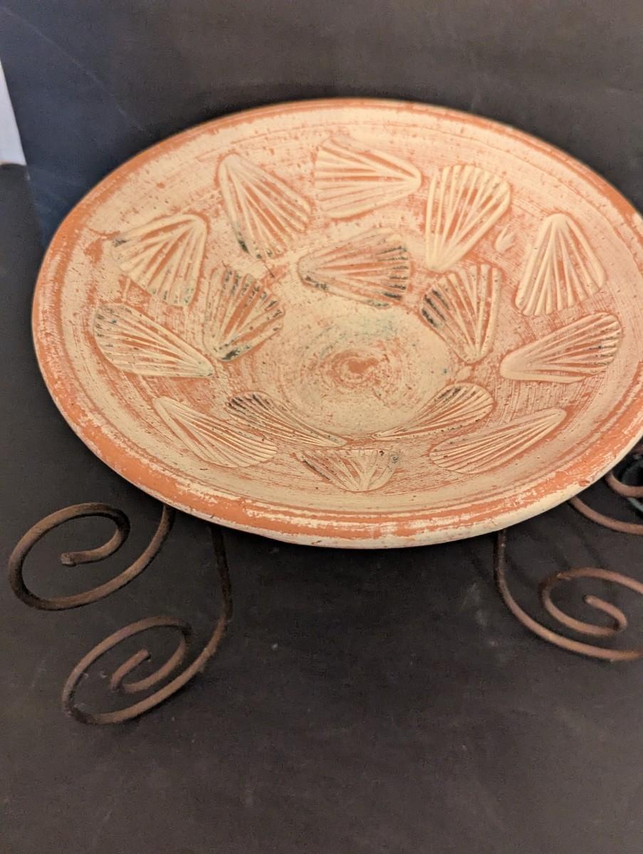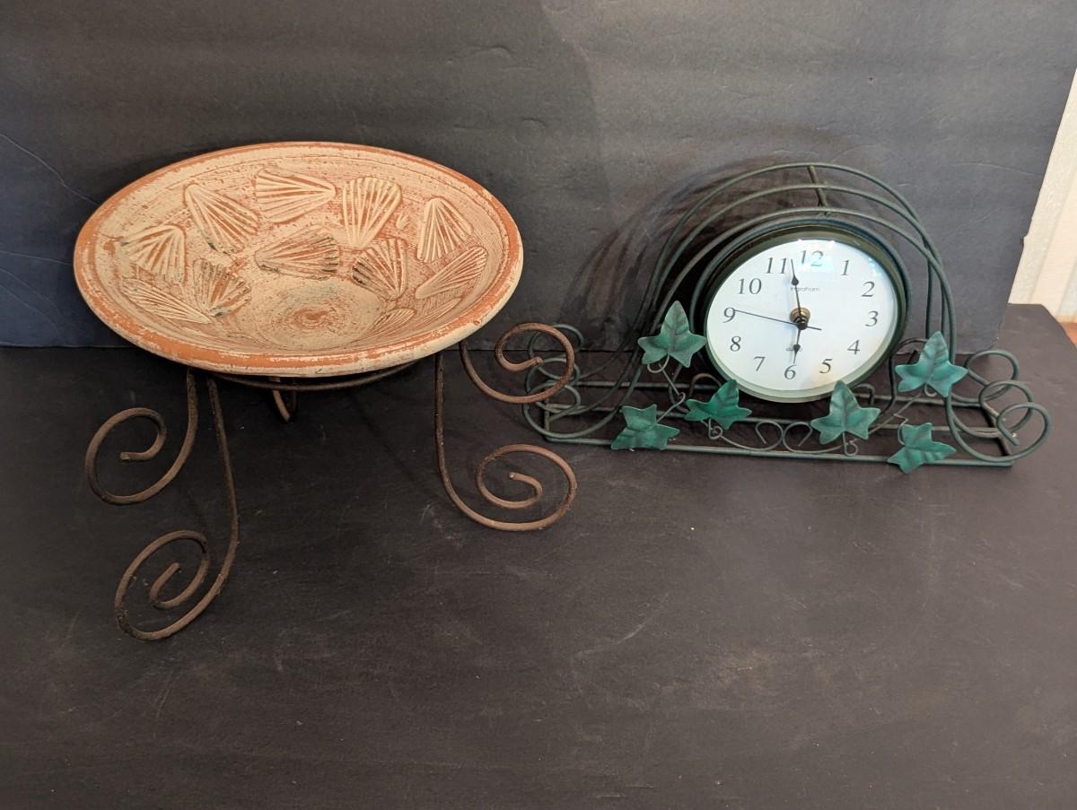 Ingraham Quartz Battery Operated Clock & Pottery Bowl With Metal Stand