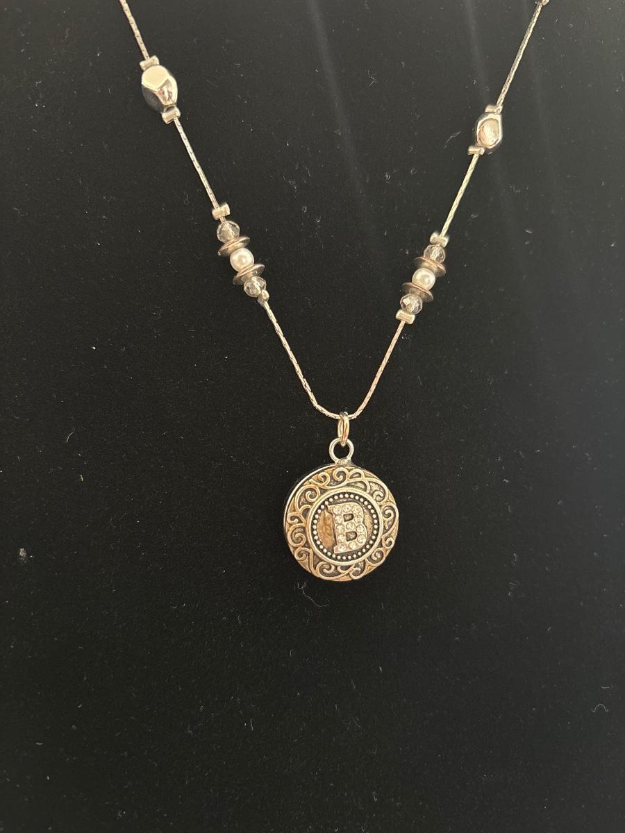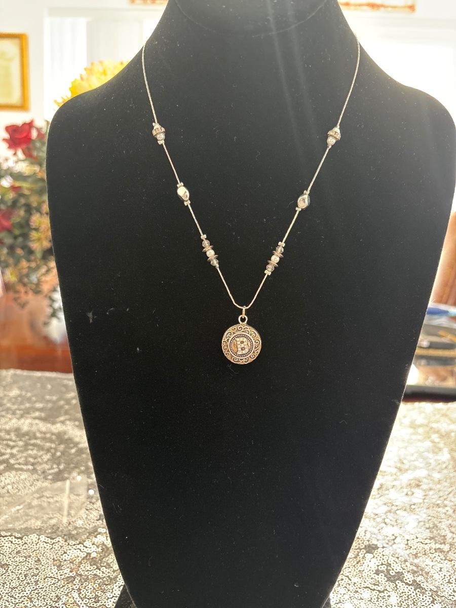 Initial pendant, silver toned chain necklace