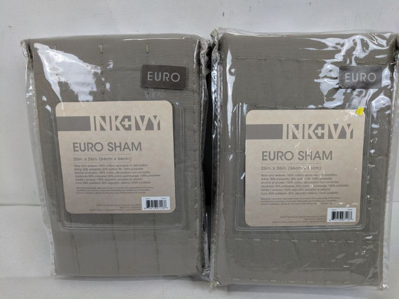 Ink Ivy Euro Sham, Gray, 26" x 26", Set of 2 - New