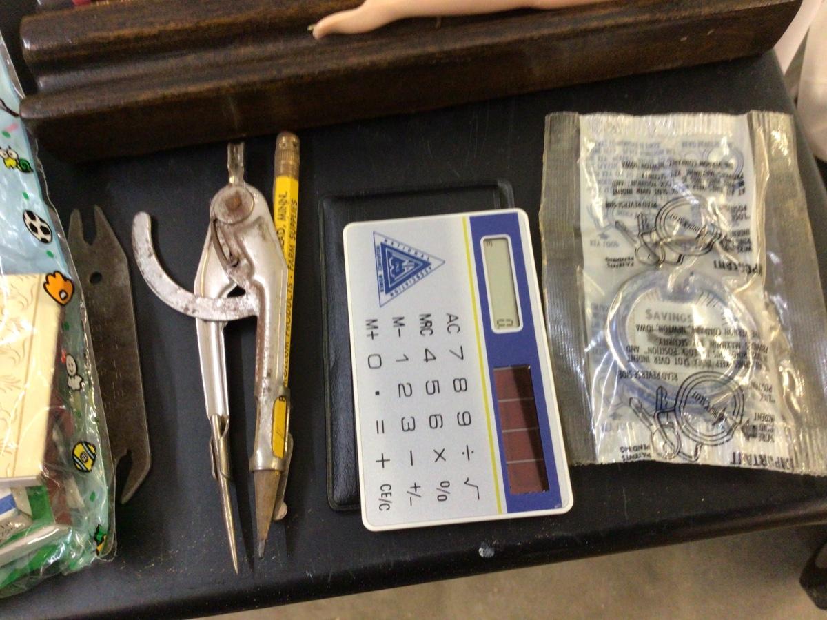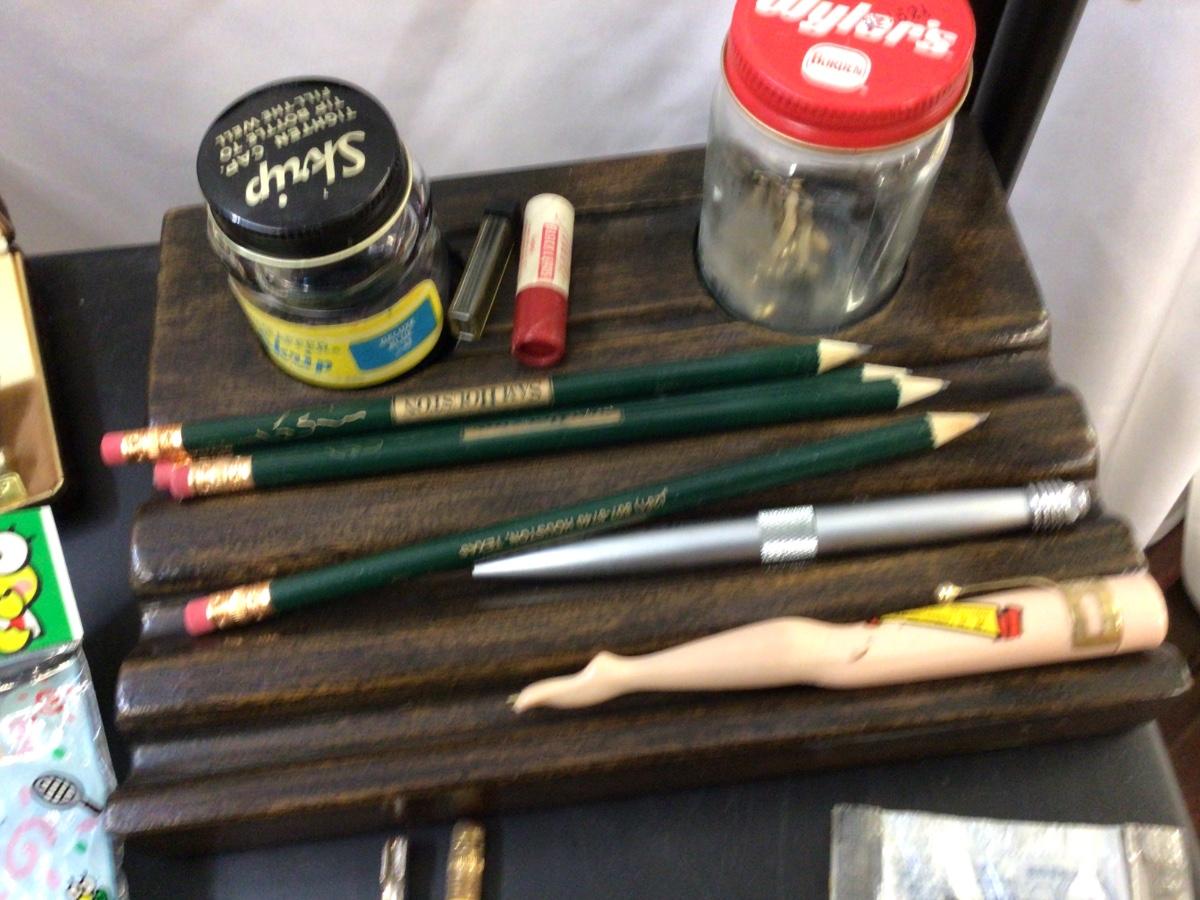 Ink Pens, Wood Pen Holder, Matches, Keys, Solar Calculator and More