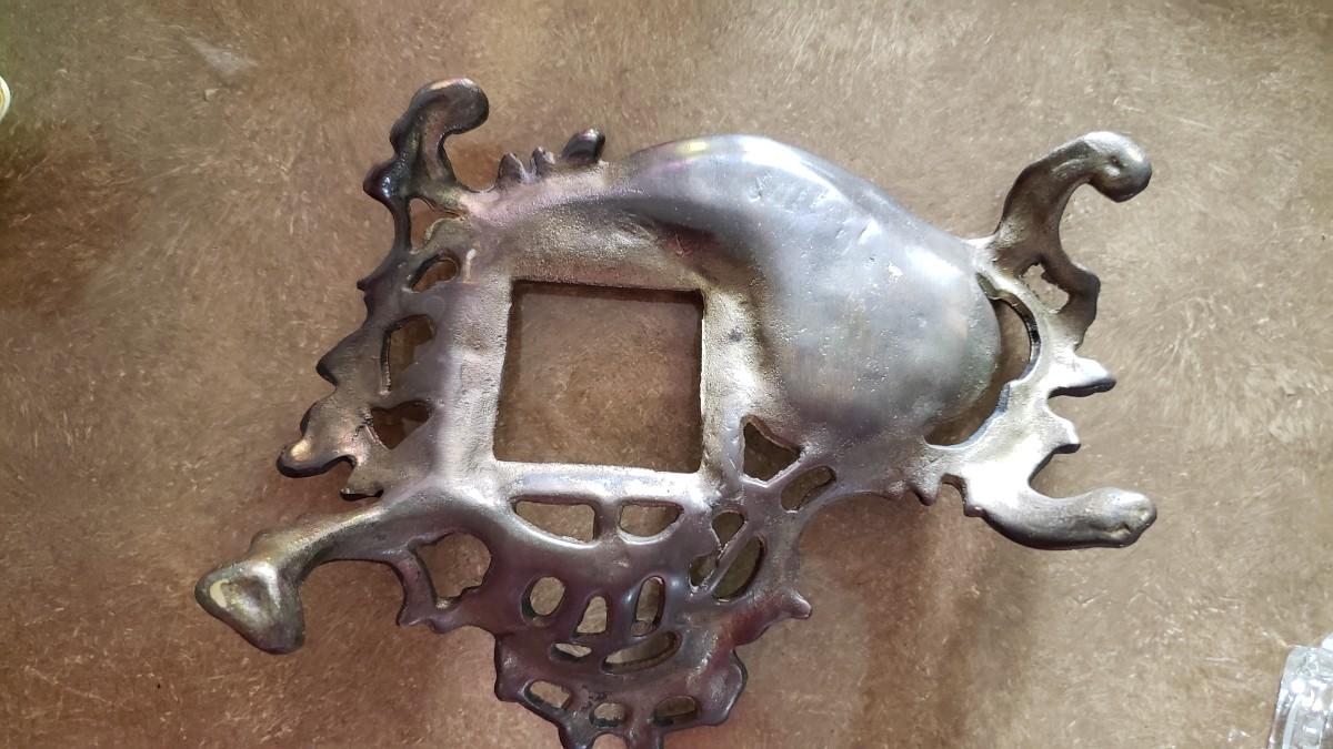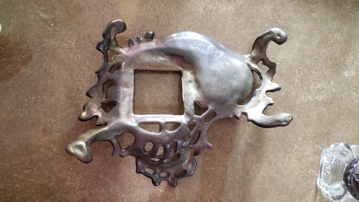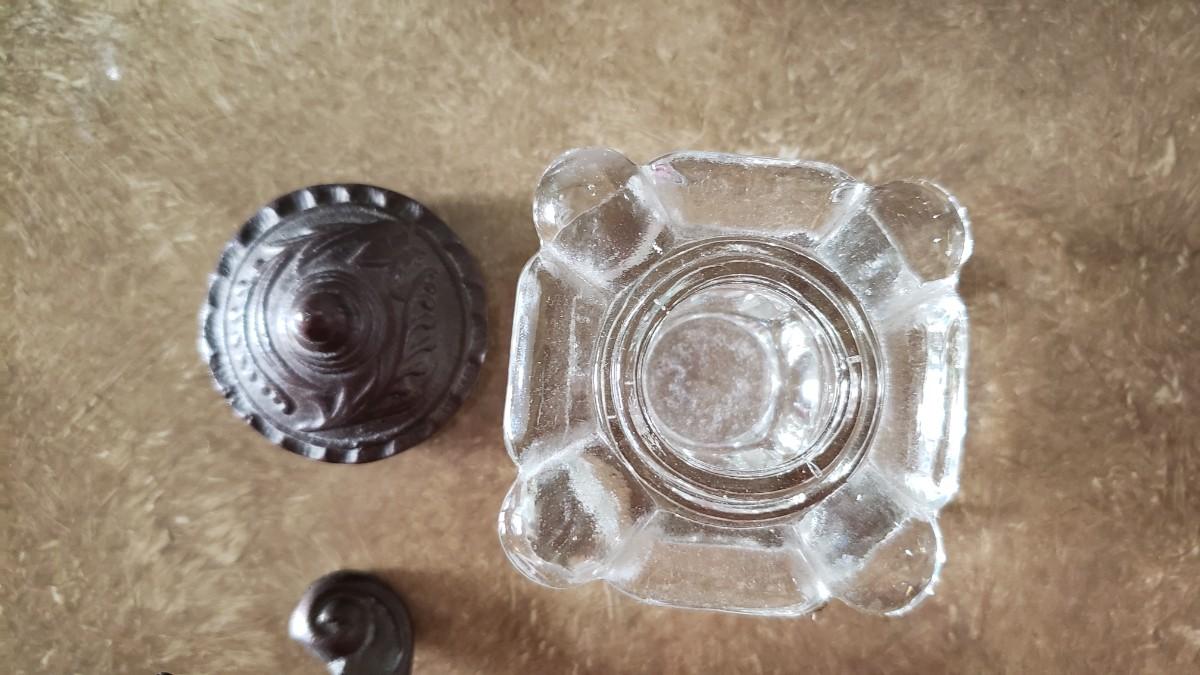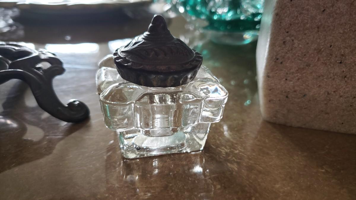 Vintage Ornate Solid Brass Inkwell Victorian Crystal Well Art Nouveau Ink Desk
