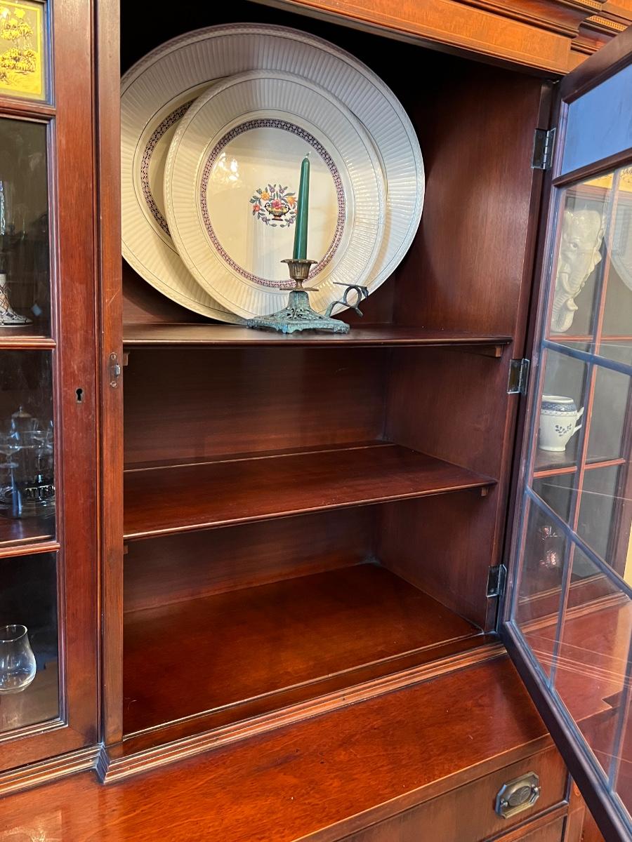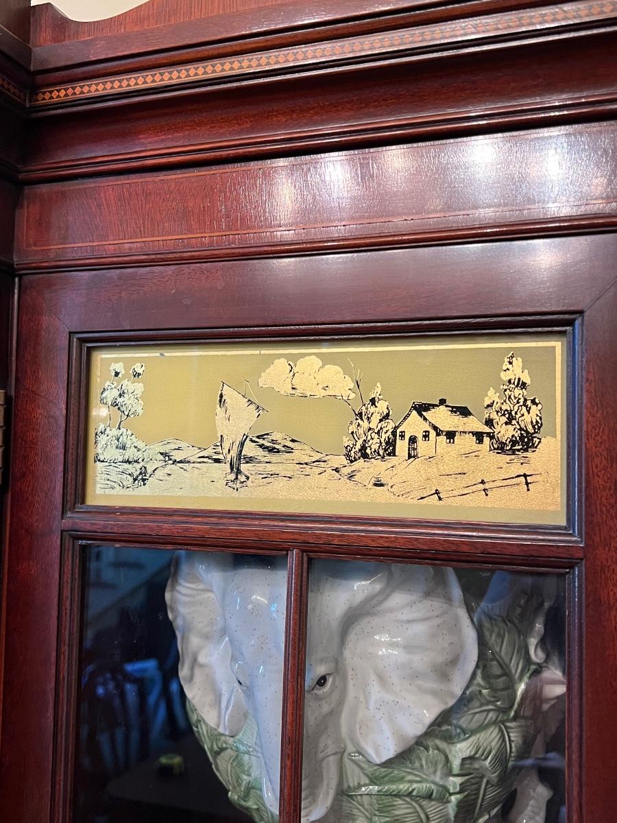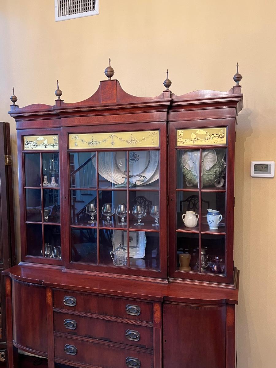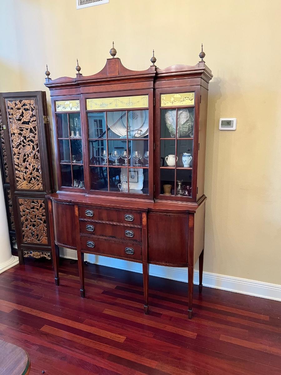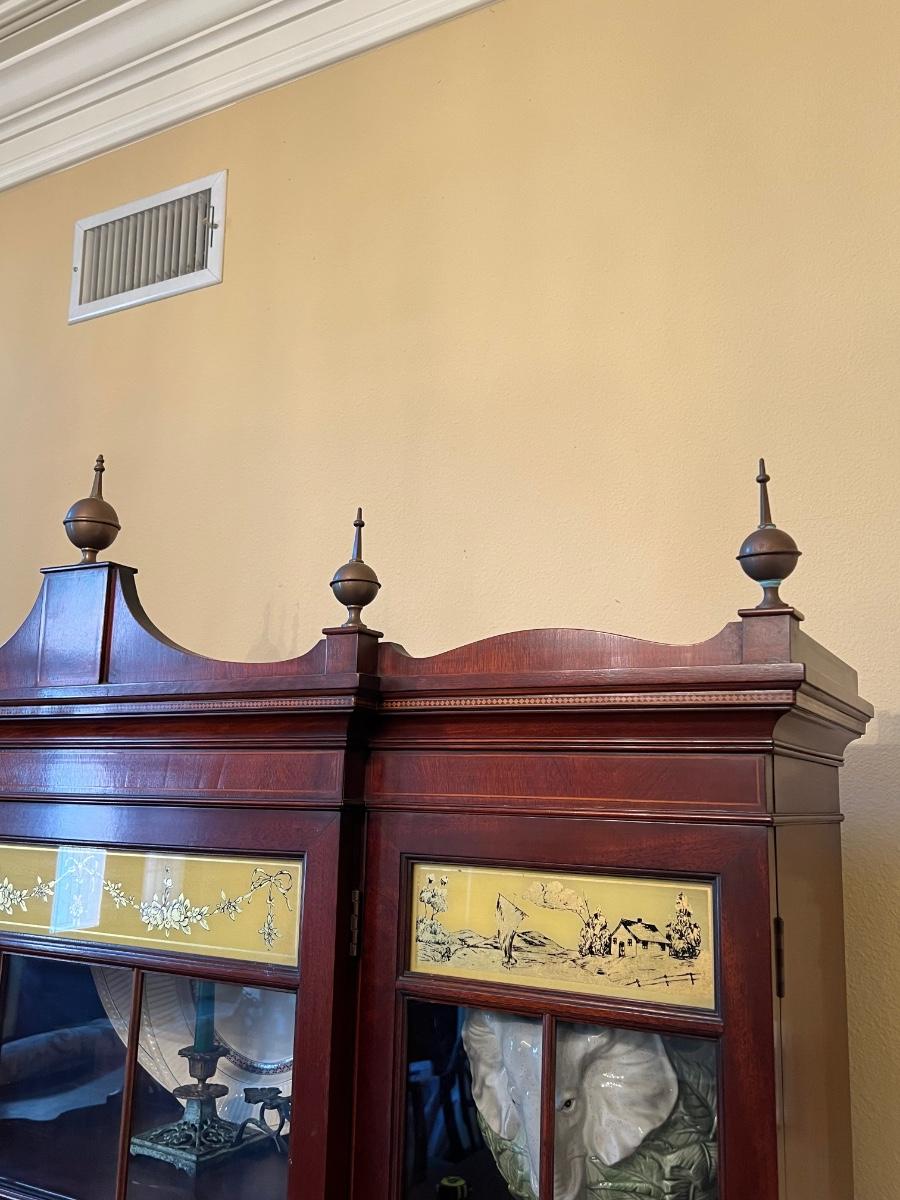 1-piece ~ Has brass finials & gold decorative glass panels ~ Shelving is not adjustable or removable ~ Items in cabinet & room divider are sold separately ~ No brand ~ 82” H x 53” W x 20” D
