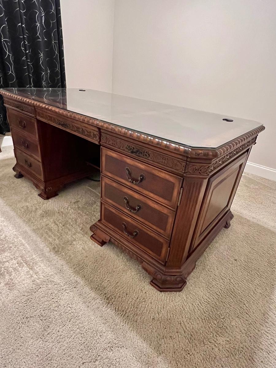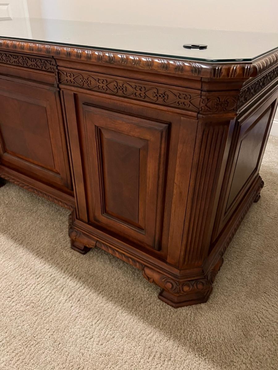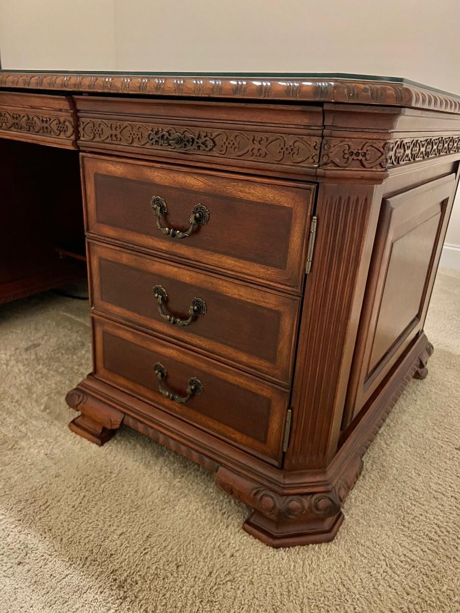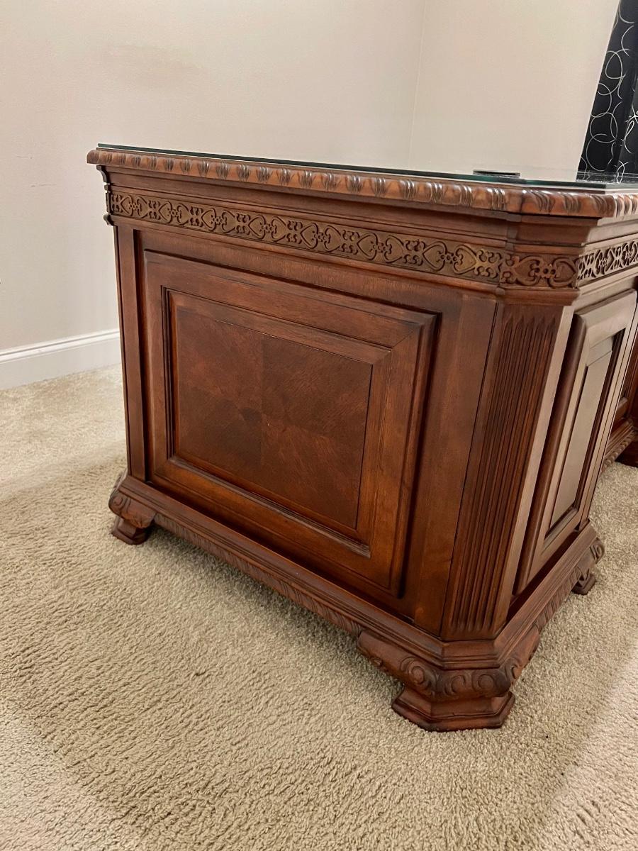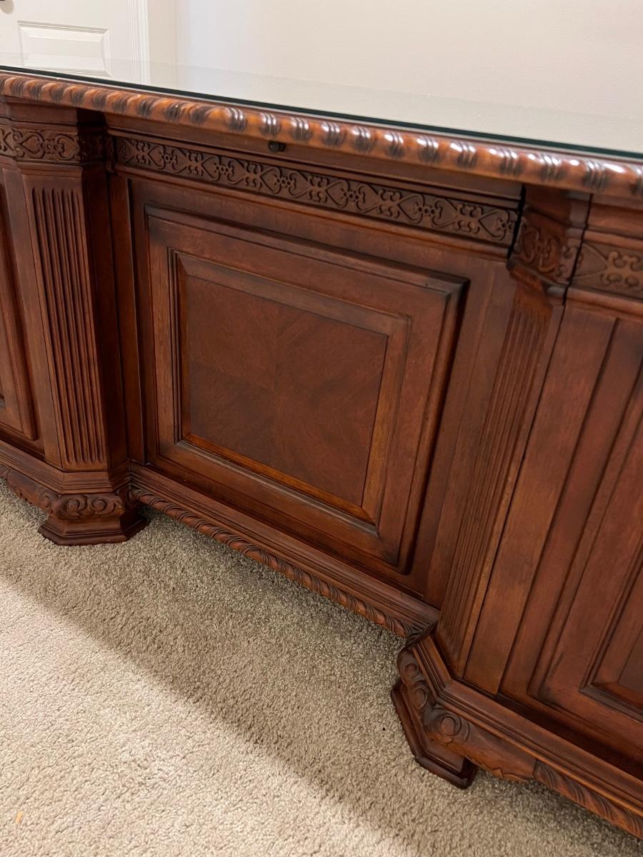 Custom Glass Top made to protect top ~ Drawers slide in & out easily ~ No brand ~ 31” H x 72” W x 36” D