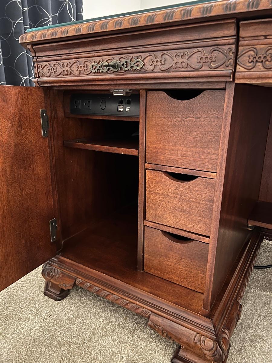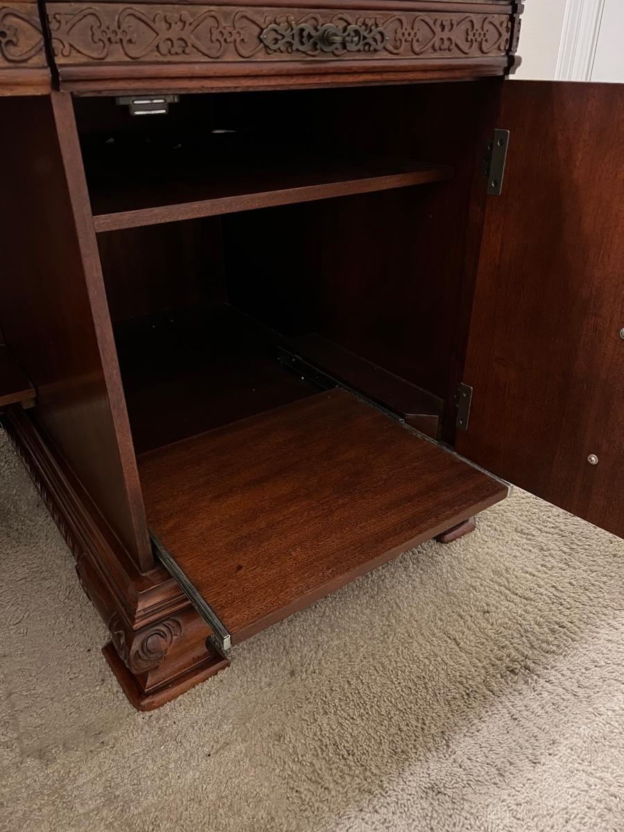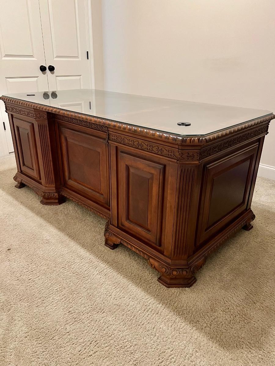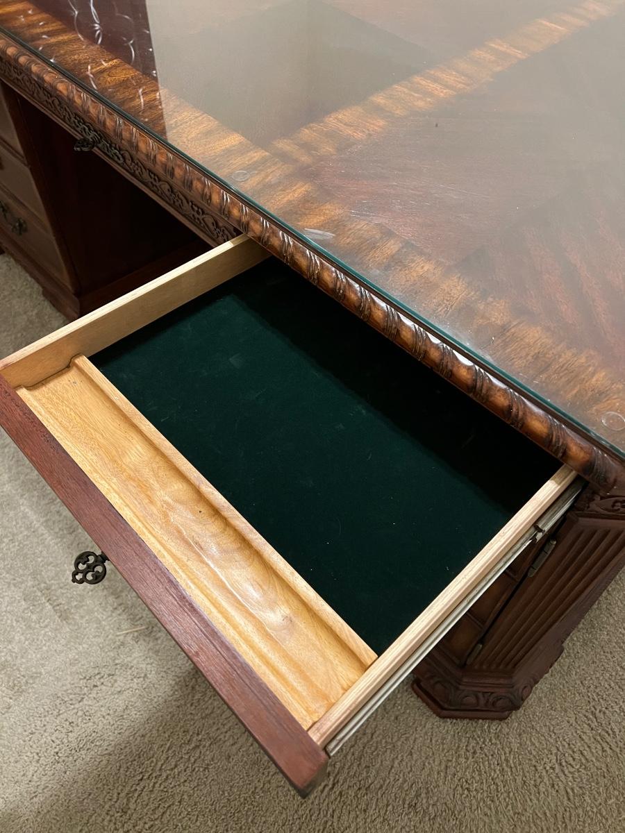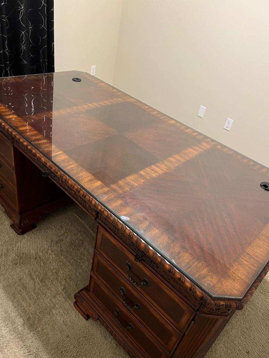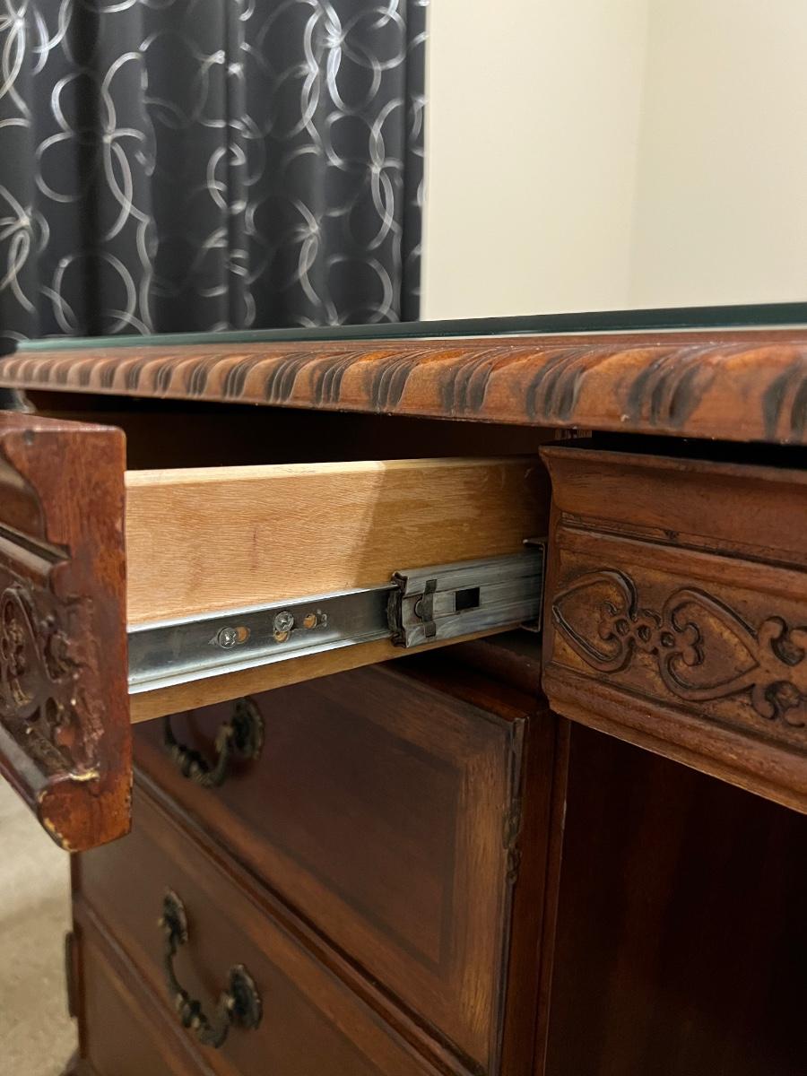 Custom Glass Top made to protect top ~ Drawers slide in & out easily ~ No brand ~ 31” H x 72” W x 36” D