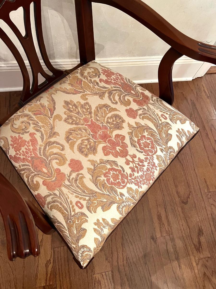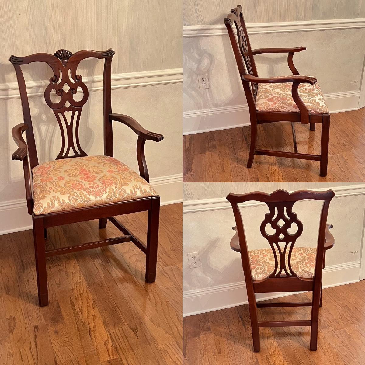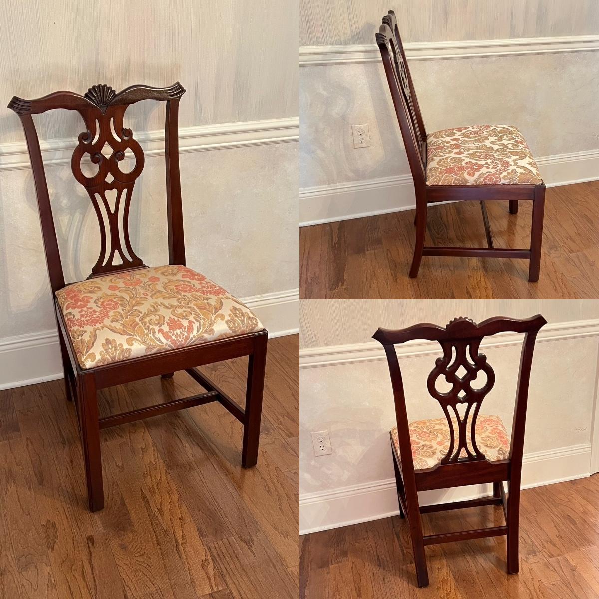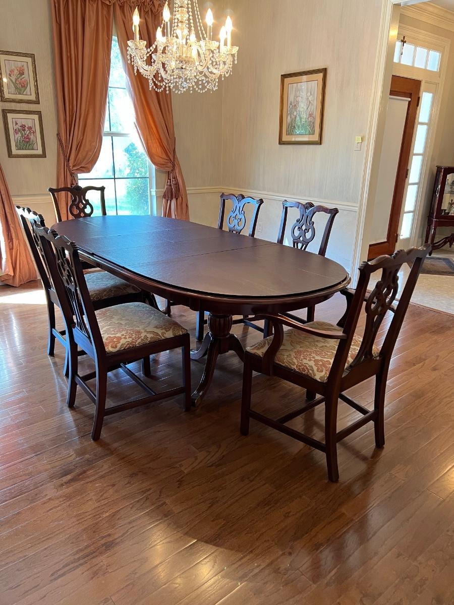 LINK-TAYLOR CO ~ Inlaid Dining Room Double Pedestal Table, Eight (8) Chippendale Style Chairs & Two (2) Leaves