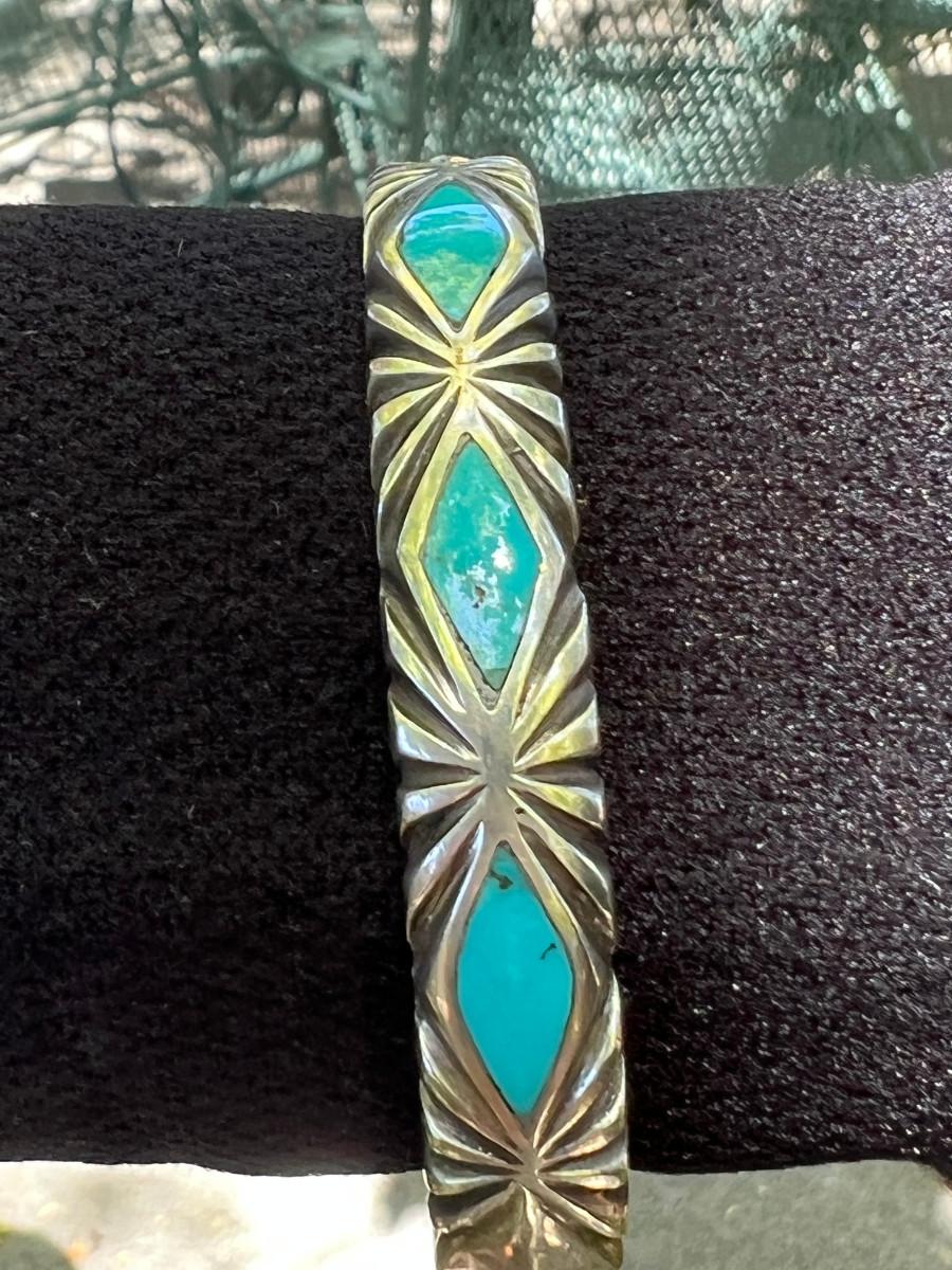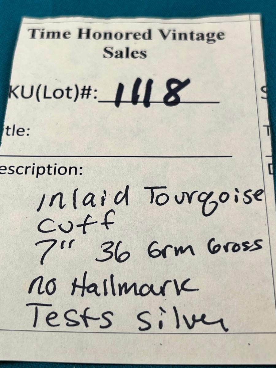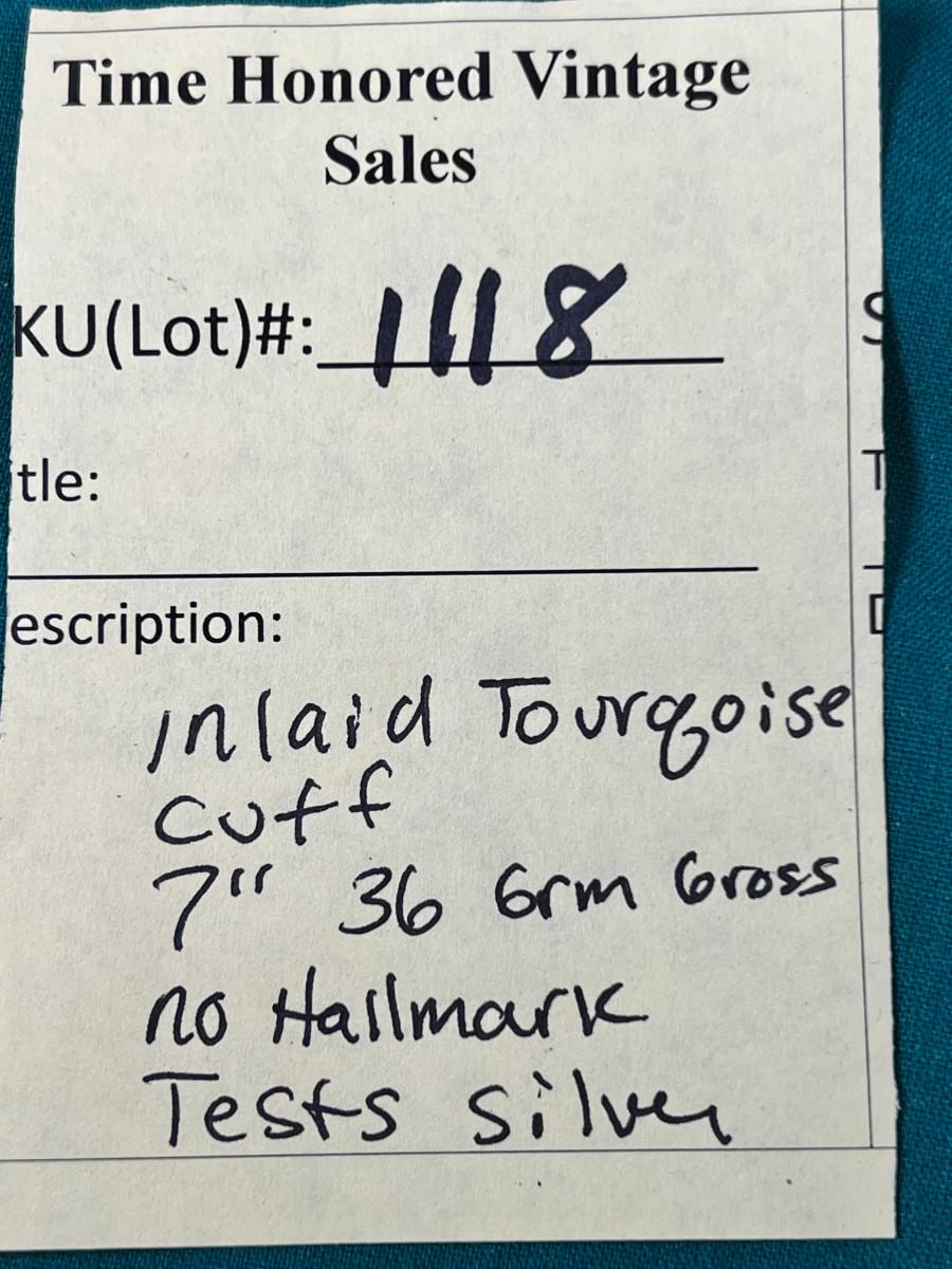 Inlaid Turquoise Cuff Un-marked 7"