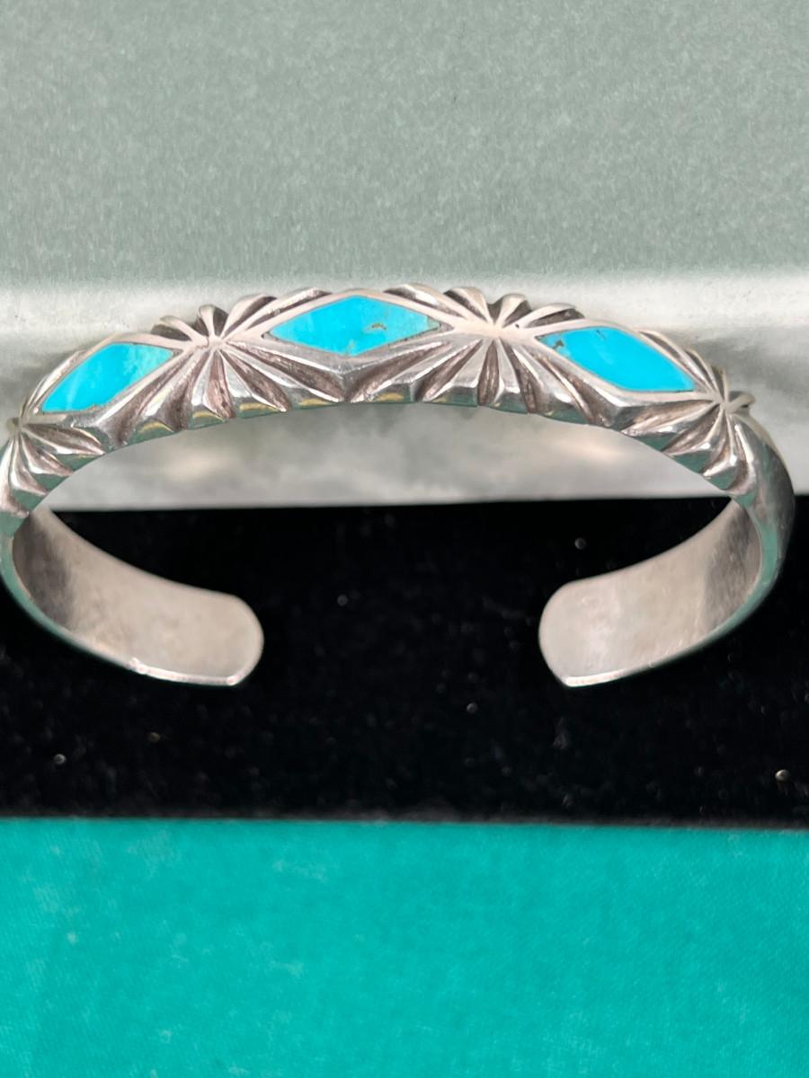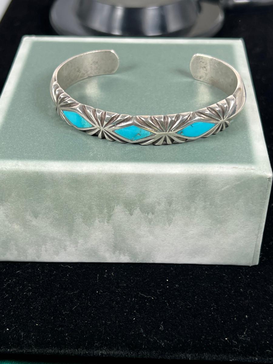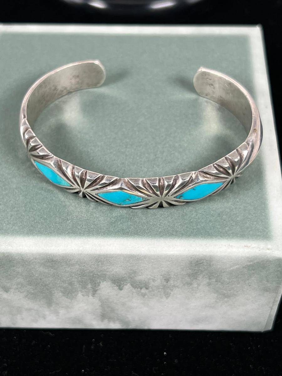 Inlaid Turquoise Cuff Un-marked 7"