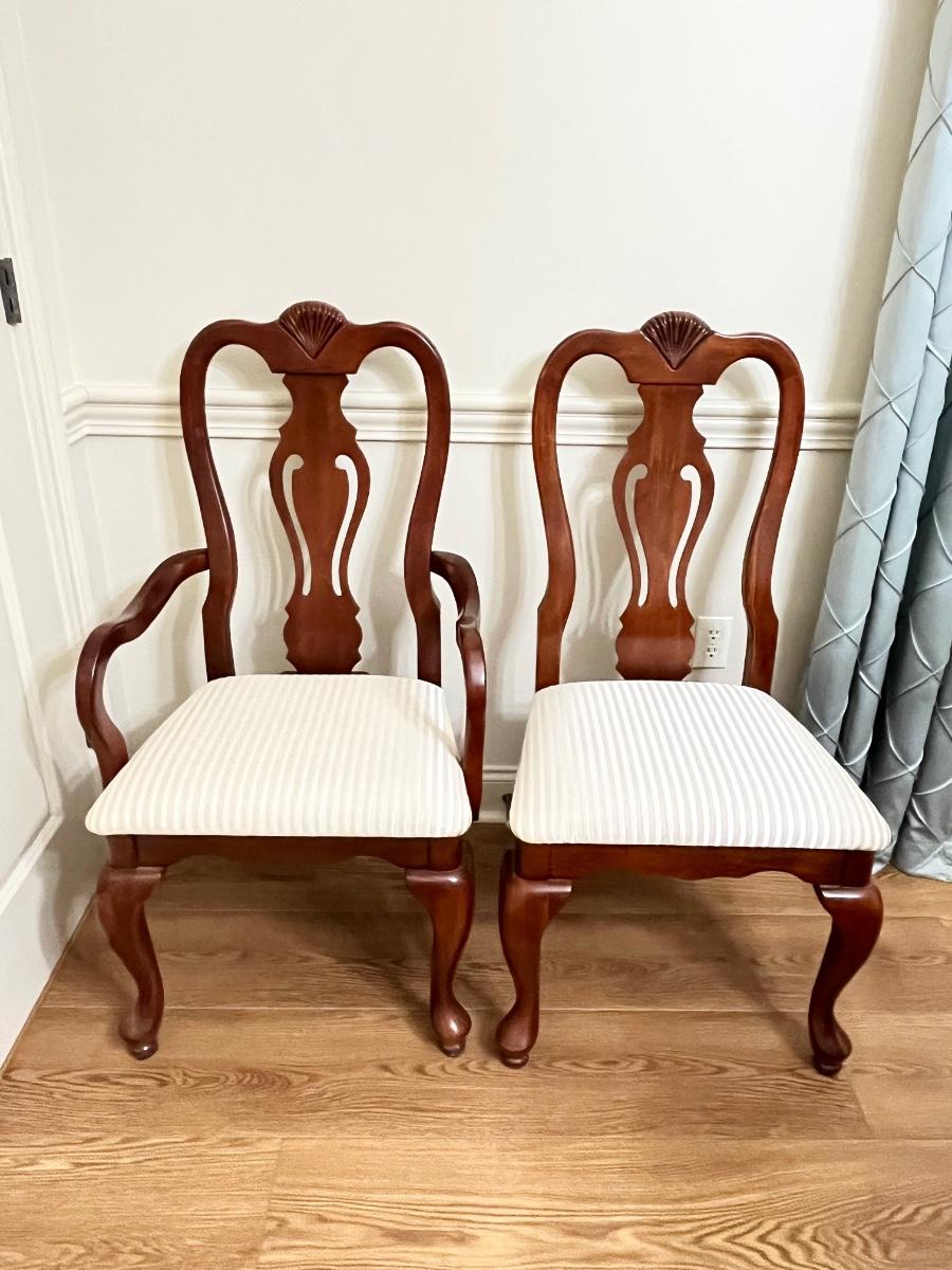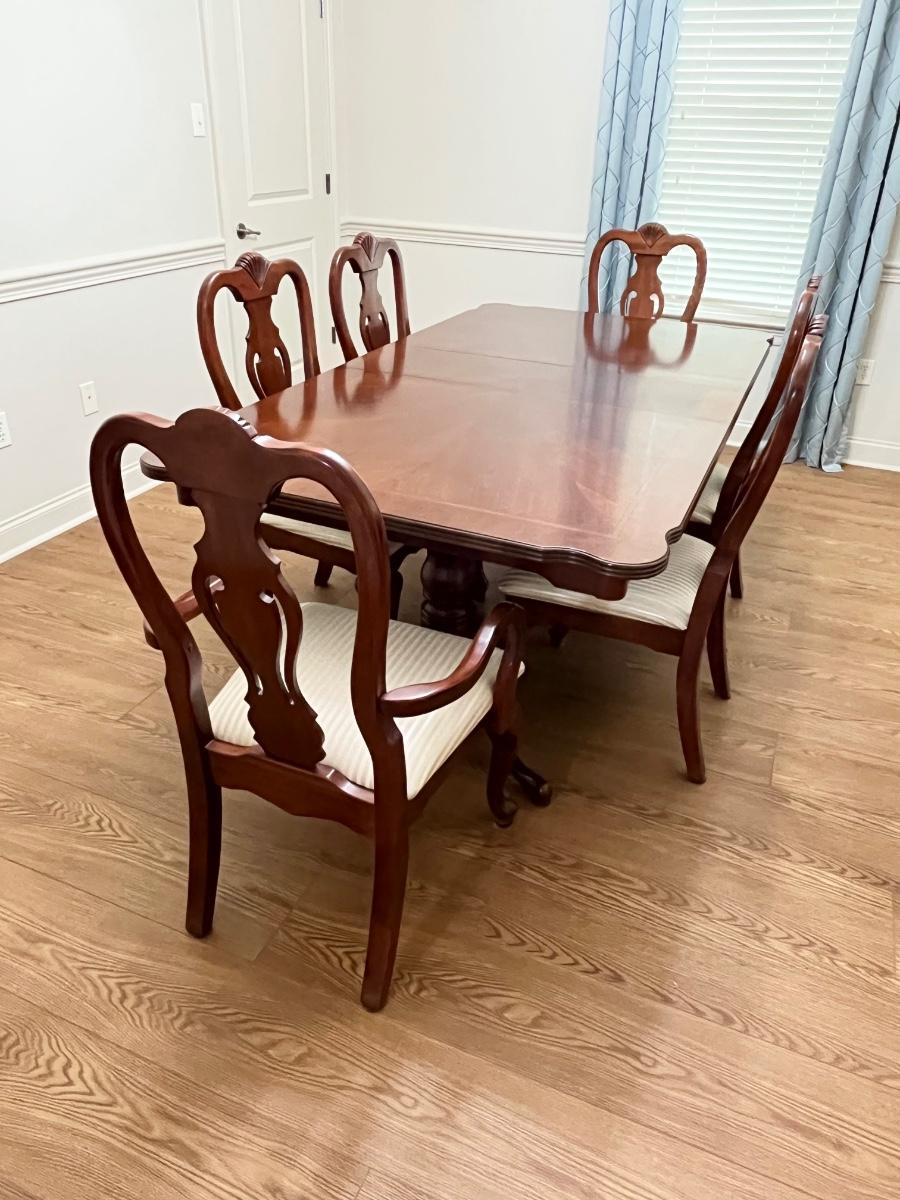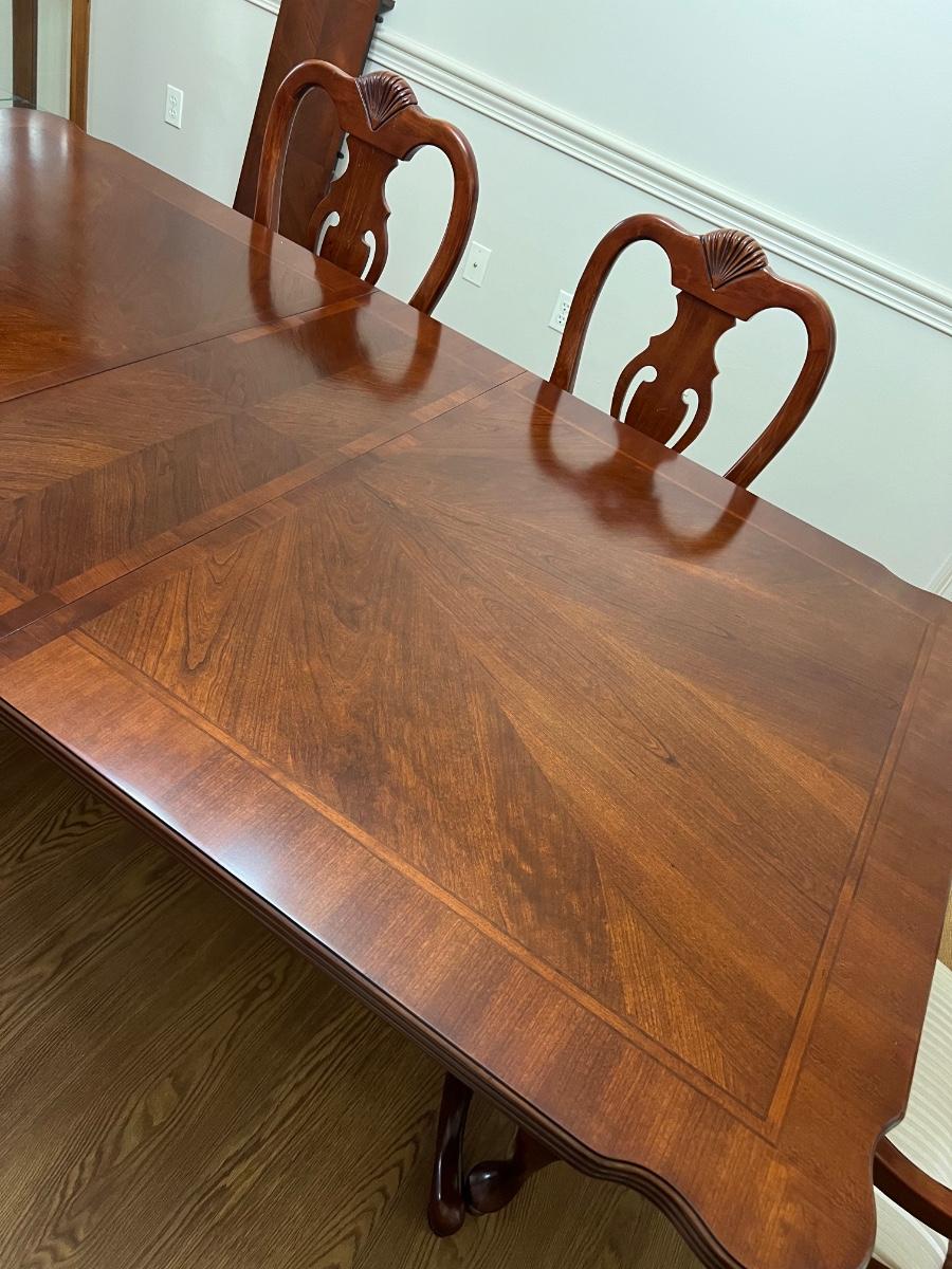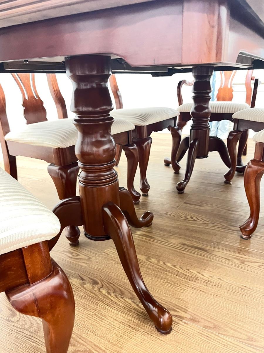 Inlaid Double Pedestal Queen Anne Dining Room Table & Chairs ~ Excellent Condition